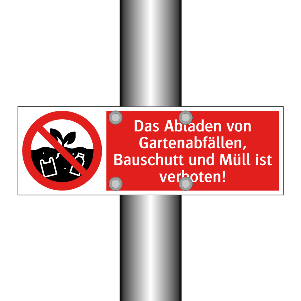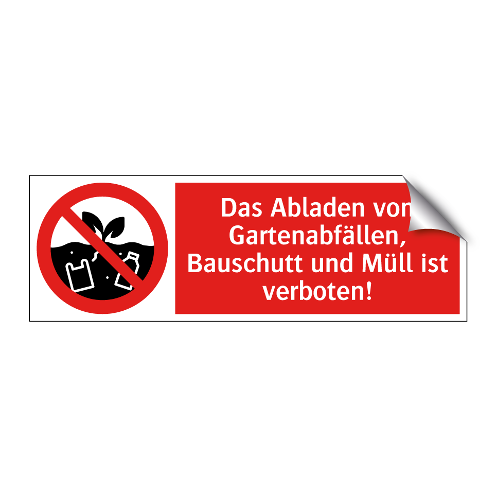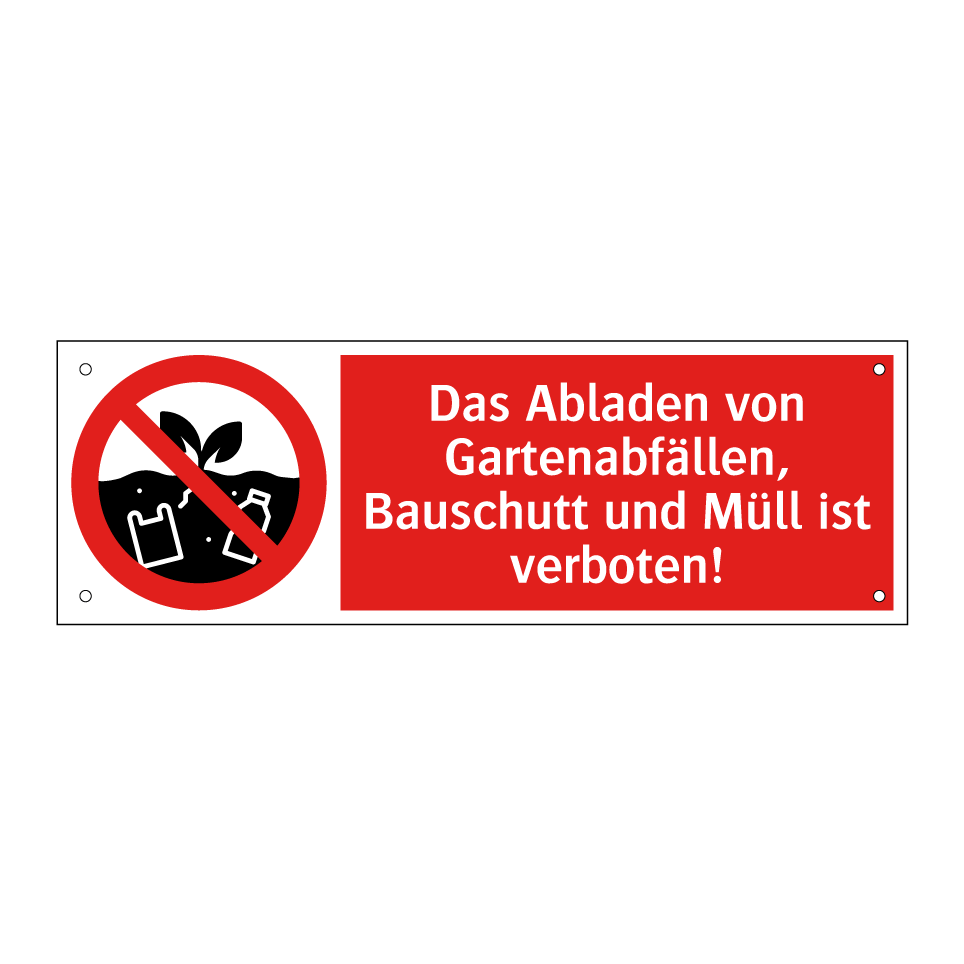 Verbotsschild mit dem Text Das Abladen von Gartenabfällen, Bauschutt und Müll ist verboten!