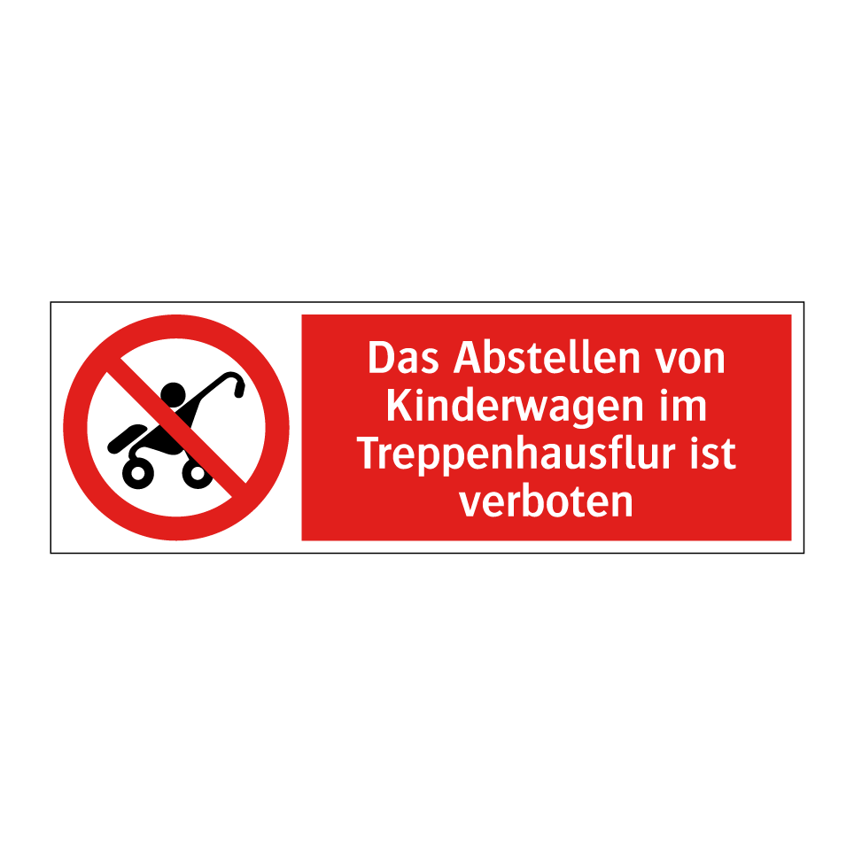 Verbotsschild mit dem Text Das Abstellen von Kinderwagen im Treppenhausflur ist verboten