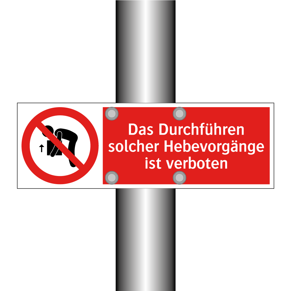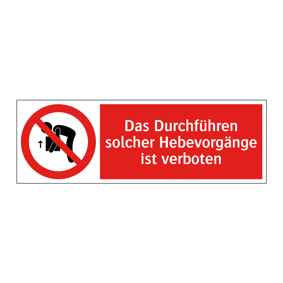 Verbotsschild mit dem Text Das Durchführen solcher Hebevorgänge ist verboten