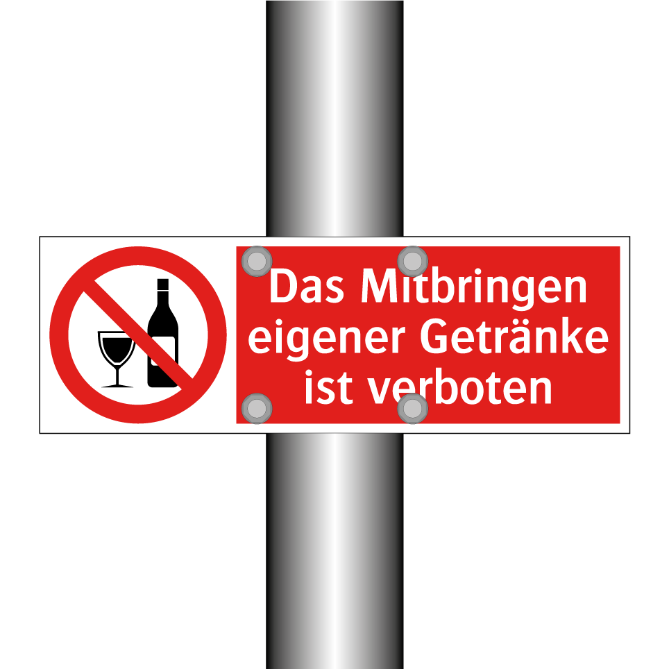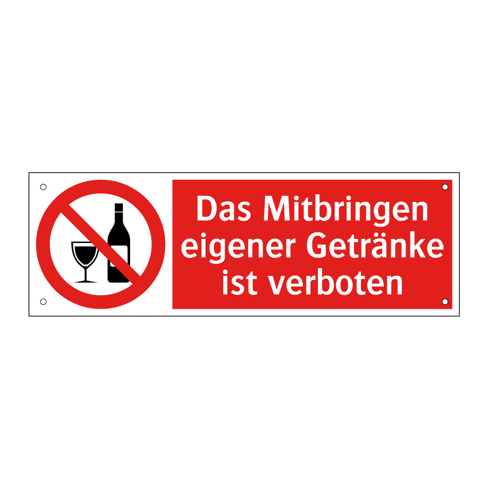 Verbotsschild mit dem Text Das Mitbringen eigener Getränke ist verboten