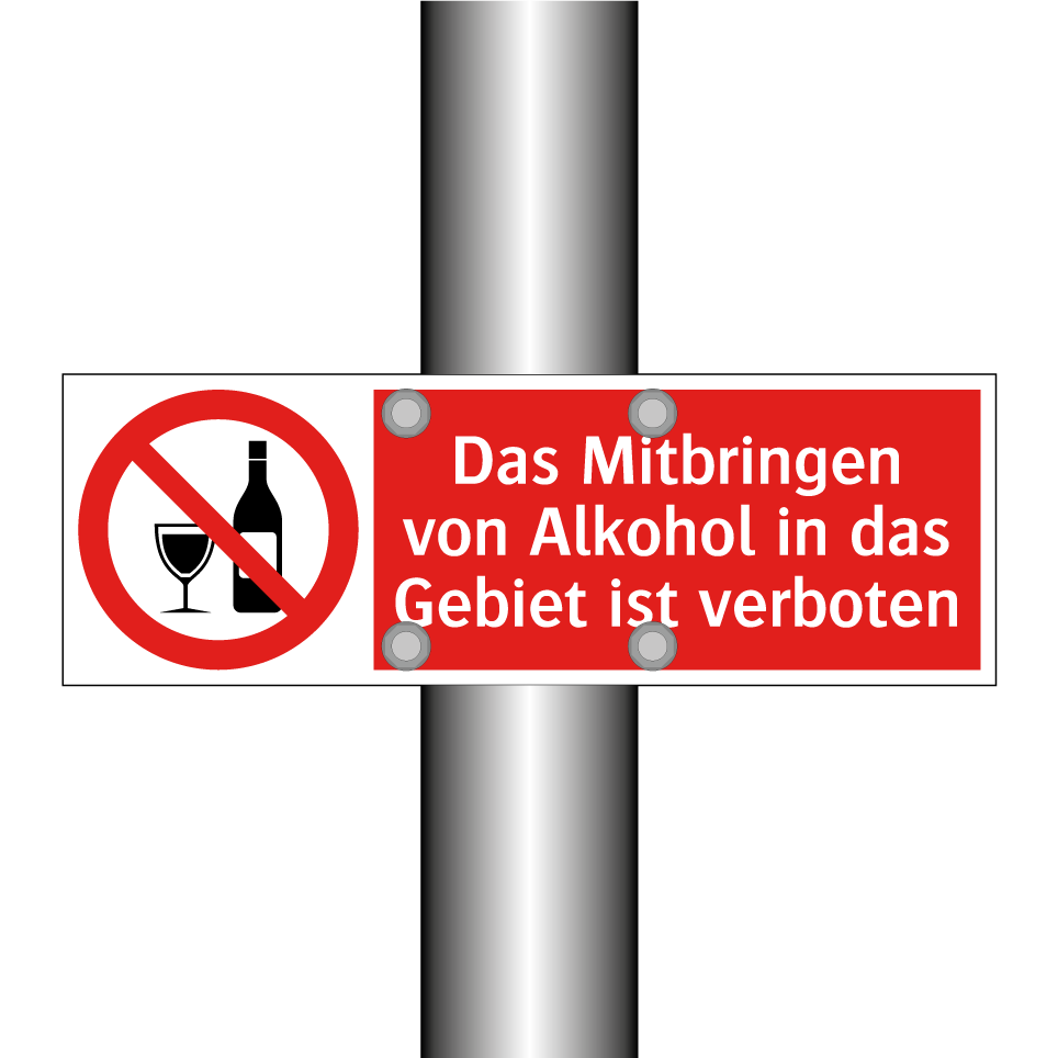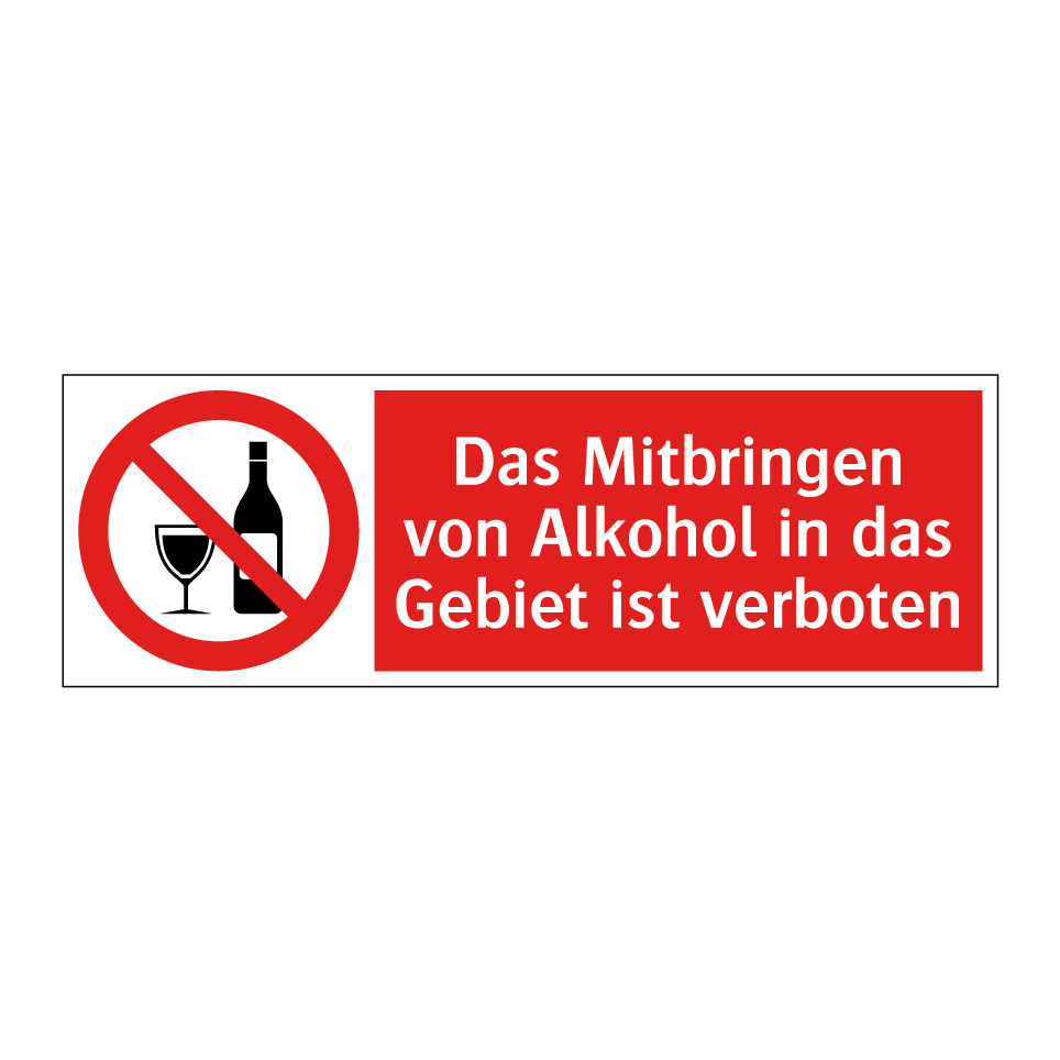 Verbotsschild mit dem Text Das Mitbringen von Alkohol in das Gebiet ist verboten