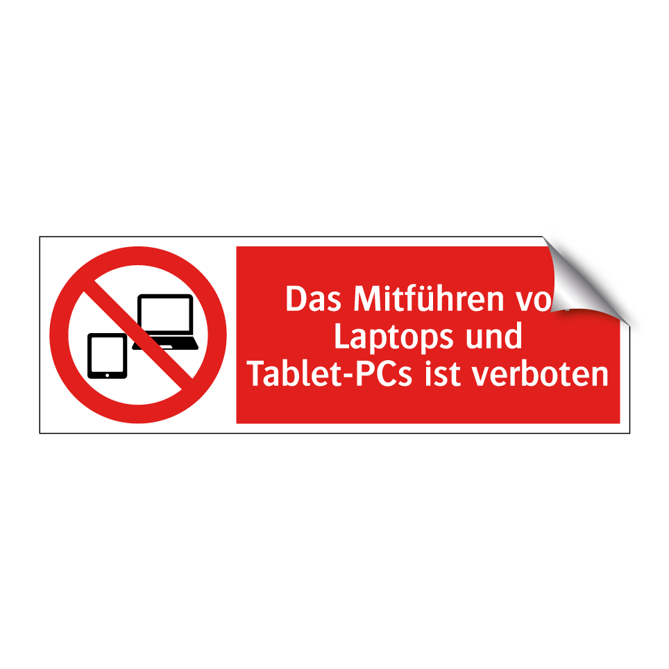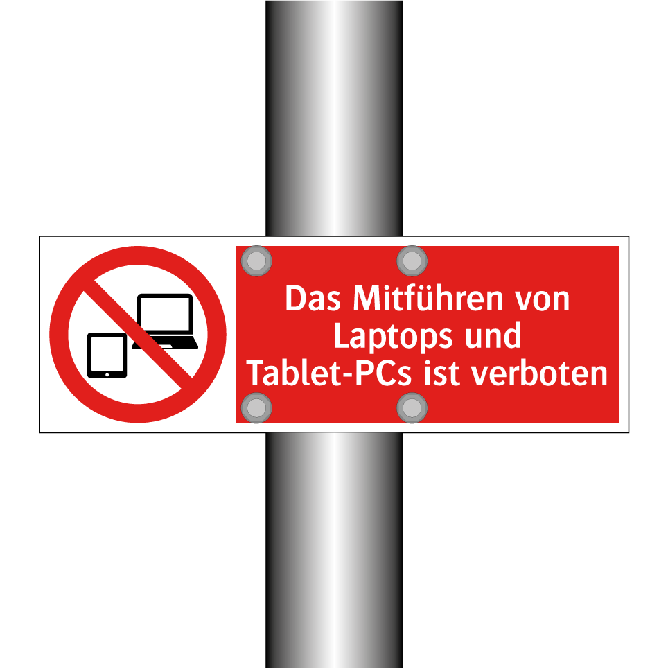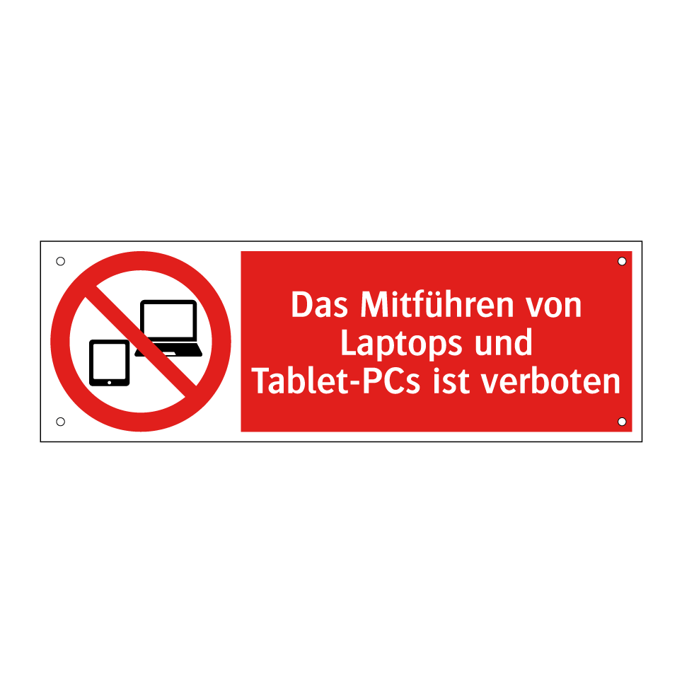 Verbotsschild mit dem Text Das Mitführen von Laptops und Tablet-PCs ist verboten