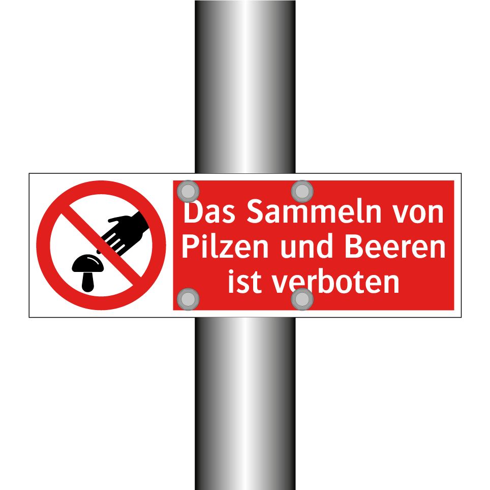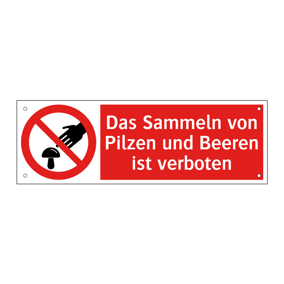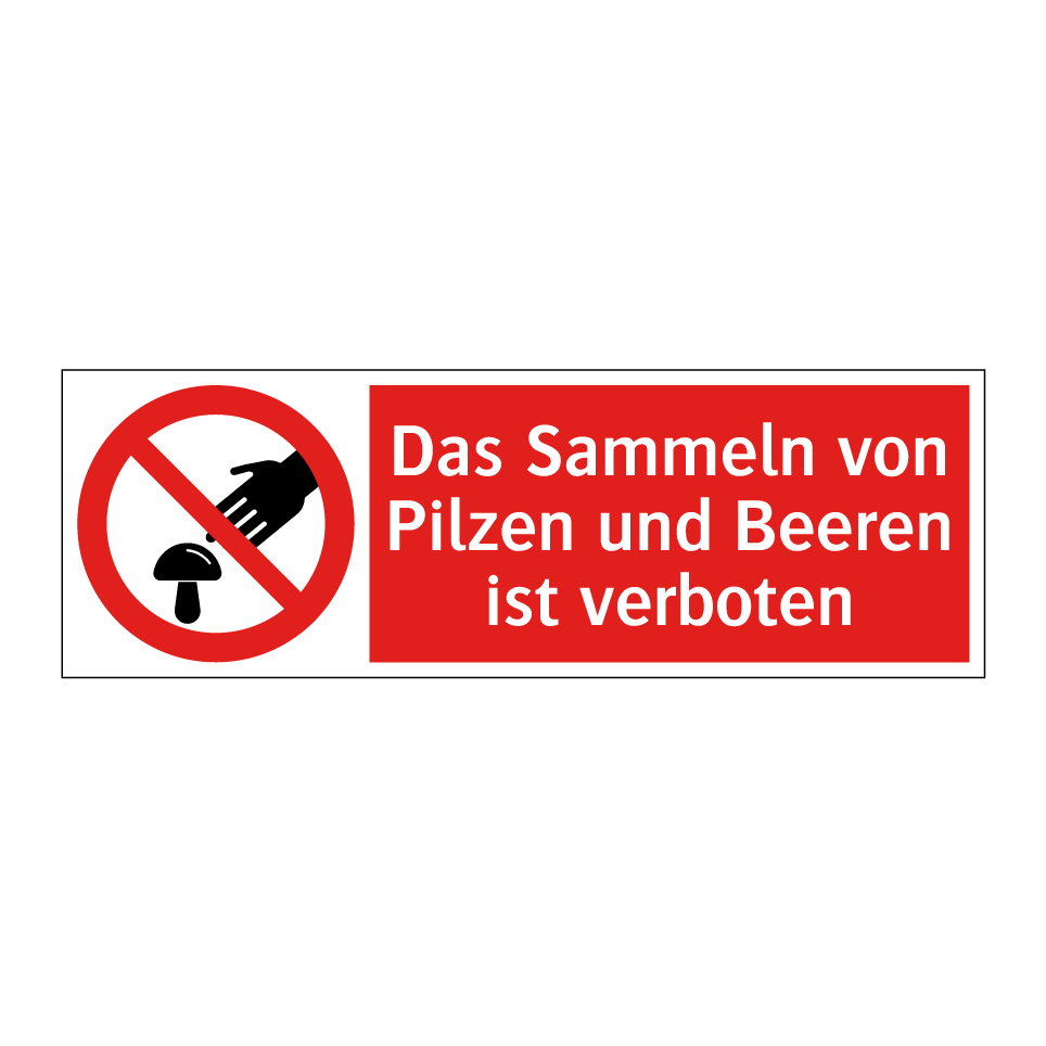 Verbotsschild mit dem Text Das Sammeln von Pilzen und Beeren ist verboten