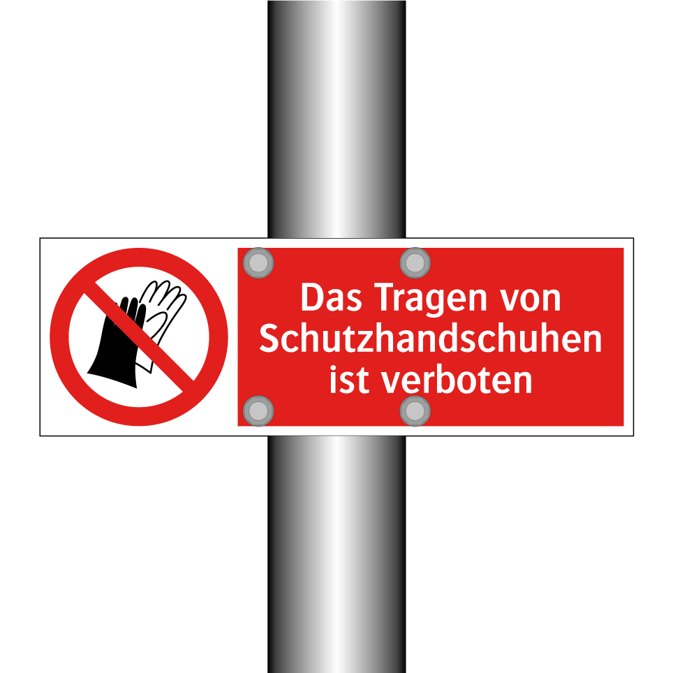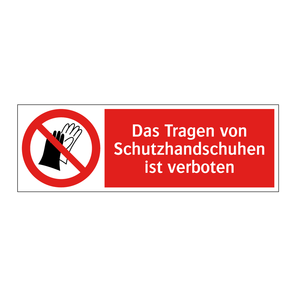 Verbotsschild mit dem Text Das Tragen von Schutzhandschuhen ist verboten
