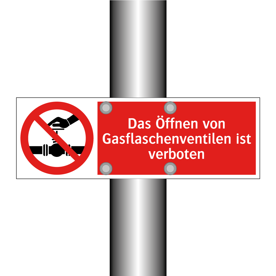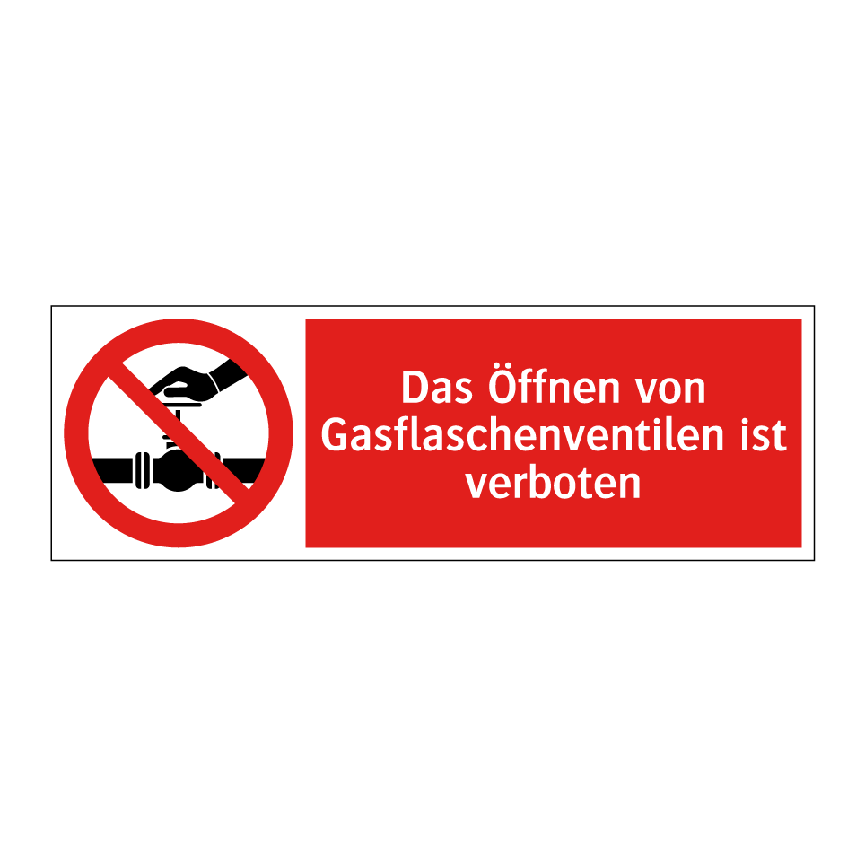 Diese auffällige Verbotsschild mit rotem Hintergrund und weißer Schrift ist ideal, um Sicherheit in Bereichen zu gewährleisten, in denen der Umgang mit Gasflaschen kritisch ist. Die klare Symbolik und der prägnante Text machen es unmissverständlich, dass das Öffnen von Gasflaschenventilen untersagt ist. Diese Verbotsschilder sind besonders nützlich in industriellen Umgebungen, Laboren oder Lagerbereichen, wo der sichere Umgang mit Gasflaschen von größter Bedeutung ist. Platzieren Sie das Schild gut sichtbar in der Nähe von Gasflaschenlagern oder an Eingängen zu Bereichen, in denen Gasflaschen verwendet werden, um die Einhaltung der Sicherheitsvorschriften zu fördern und Unfälle zu vermeiden.