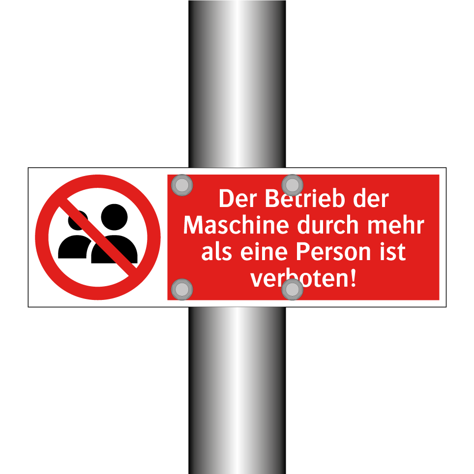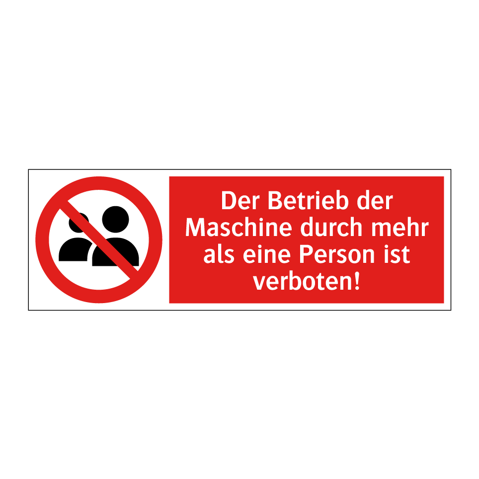 Verbotsschild mit dem Text Der Betrieb der Maschine durch mehr als eine Person ist verboten!