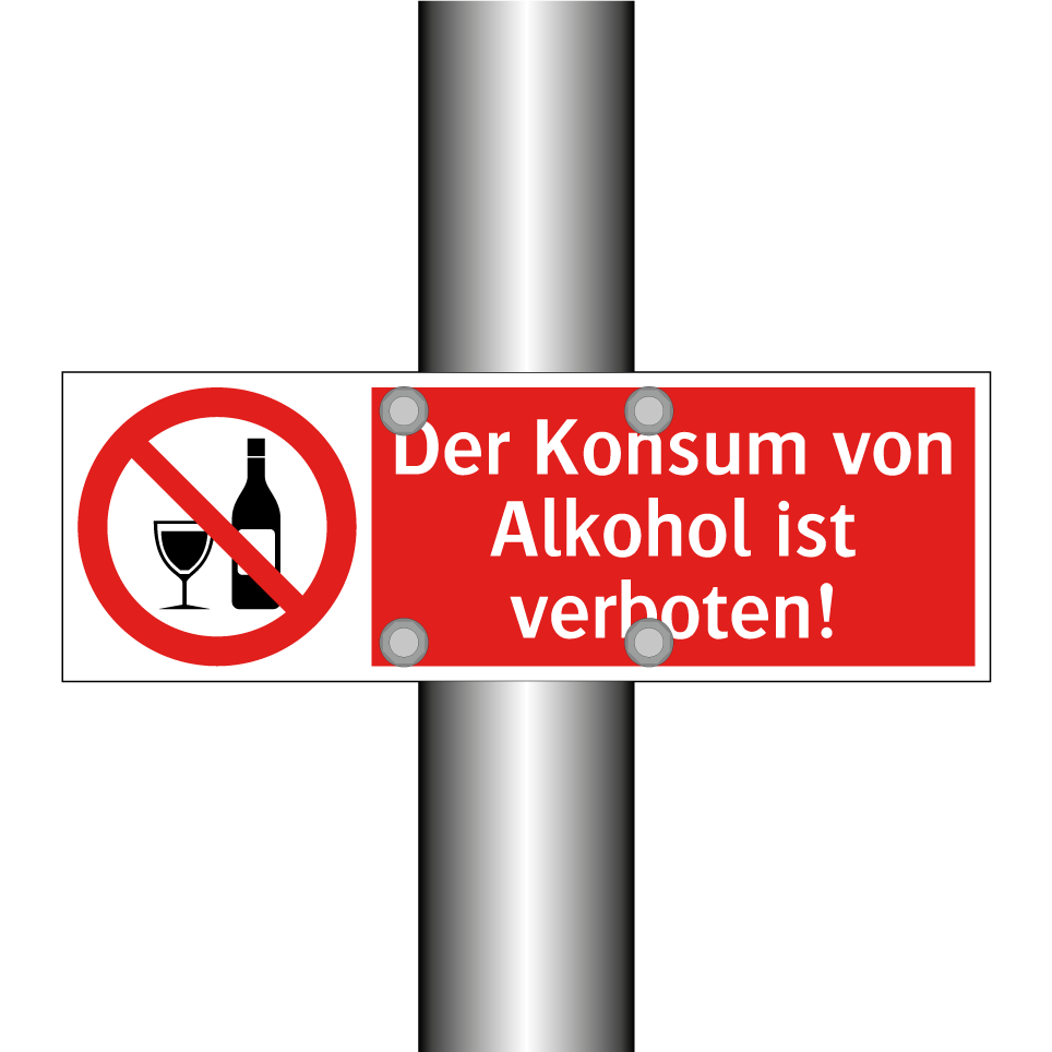 Verbotsschild mit dem Text Der Konsum von Alkohol ist verboten!