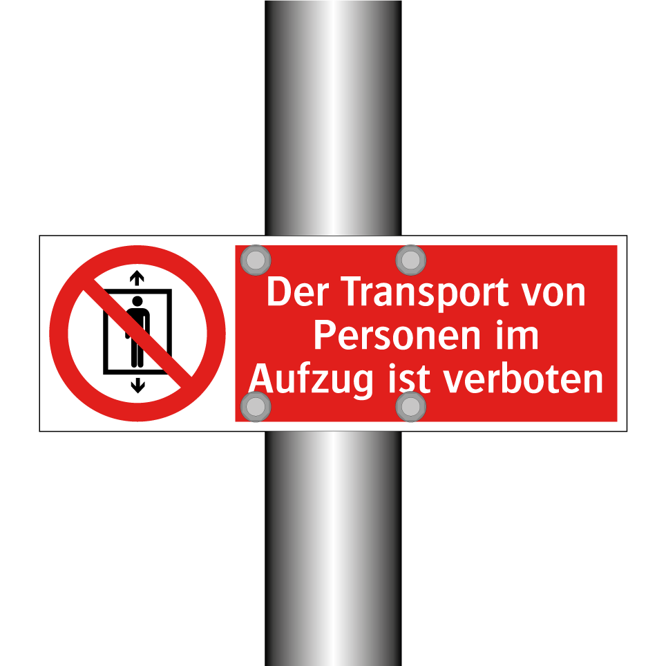 Verbotsschild mit dem Text Der Transport von Personen im Aufzug ist verboten