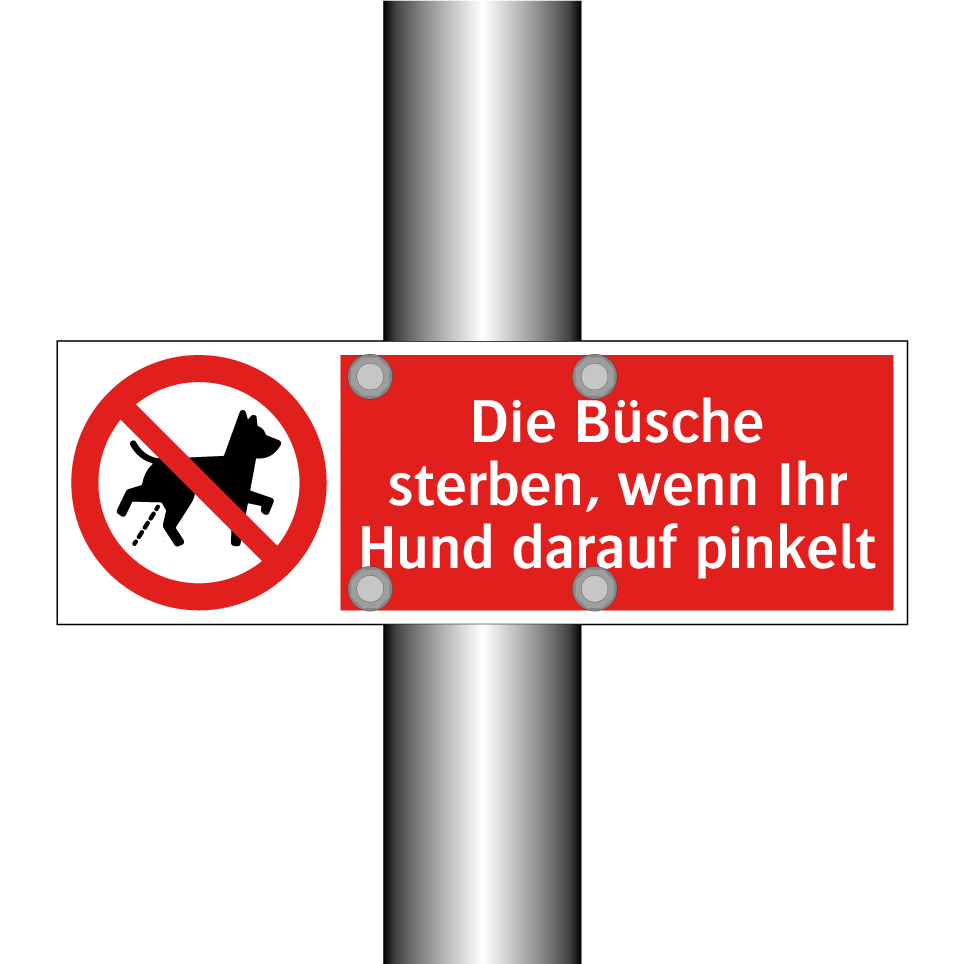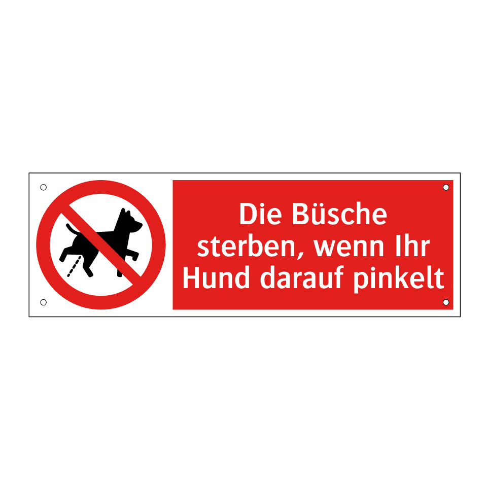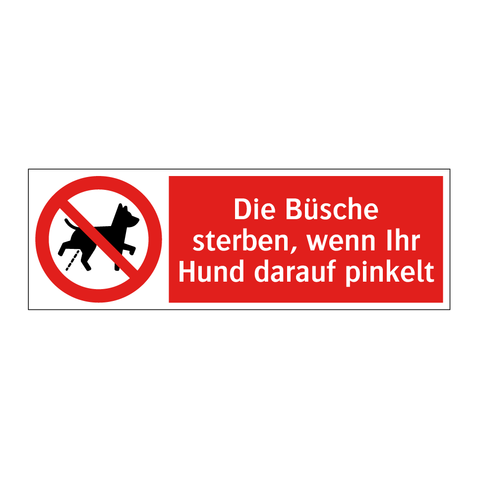 Verbotsschild mit dem Text Die Büsche sterben, wenn Ihr Hund darauf pinkelt