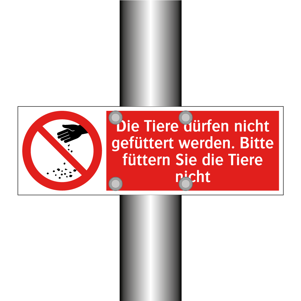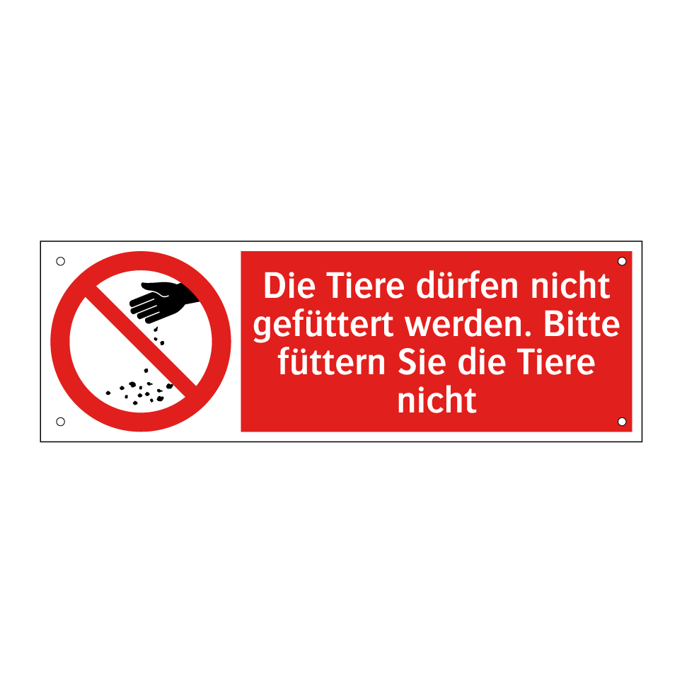 Verbotsschild mit dem Text Die Tiere dürfen nicht gefüttert werden. Bitte füttern Sie die Tiere nicht