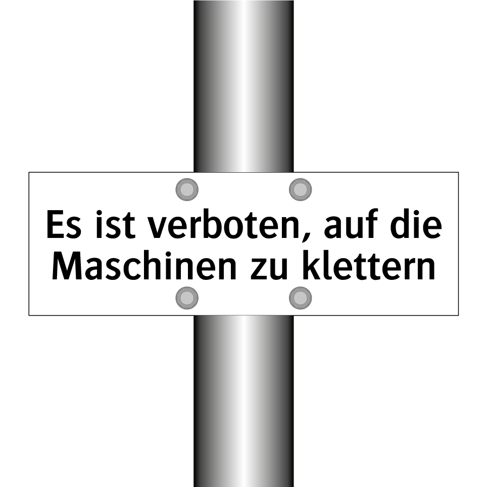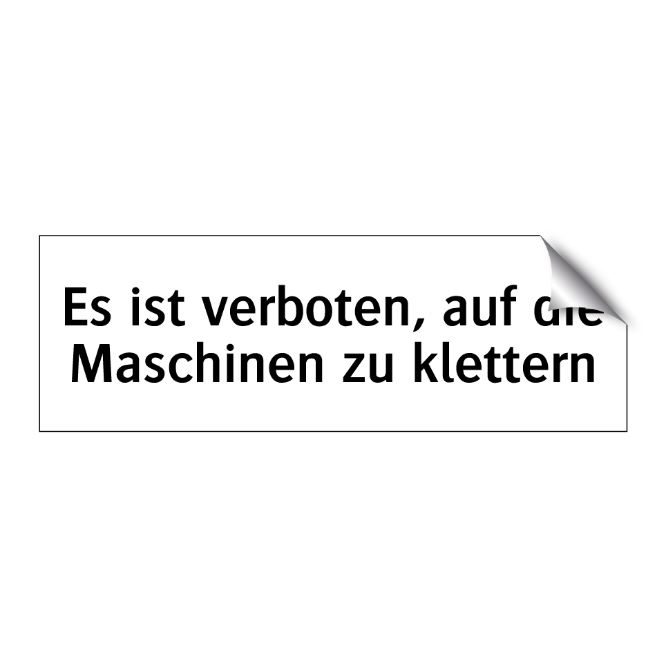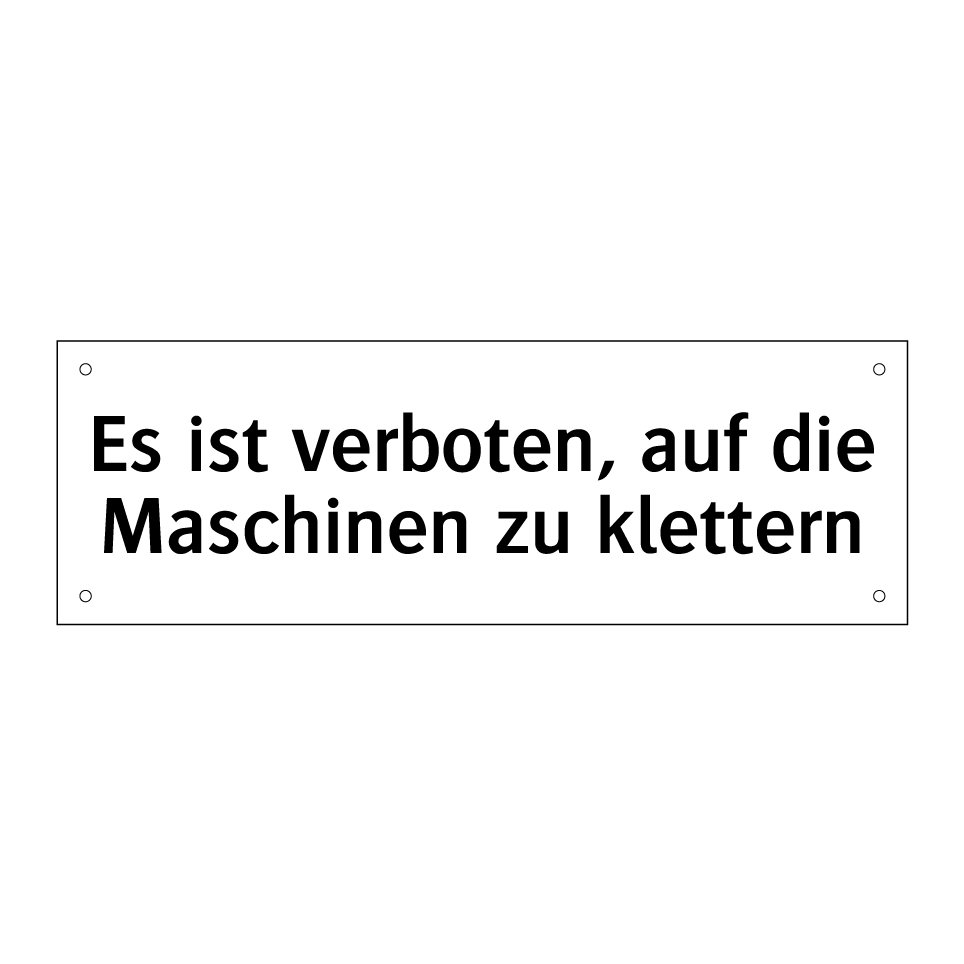 Verbotsschild mit dem Text Es ist verboten, auf die Maschinen zu klettern