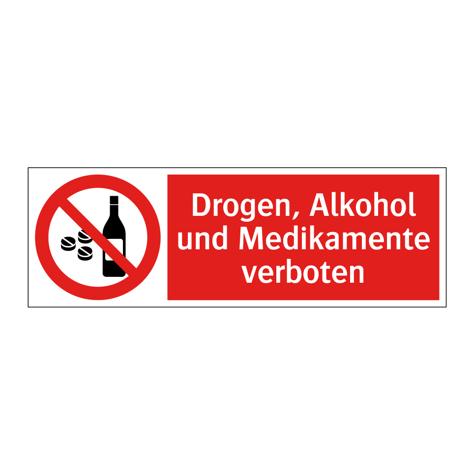 Verbotsschild mit dem Text Drogen, Alkohol und Medikamente verboten