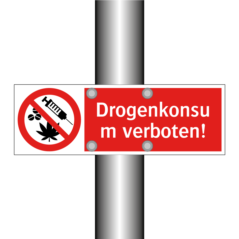 Verbotsschild mit dem Text Drogenkonsum verboten!