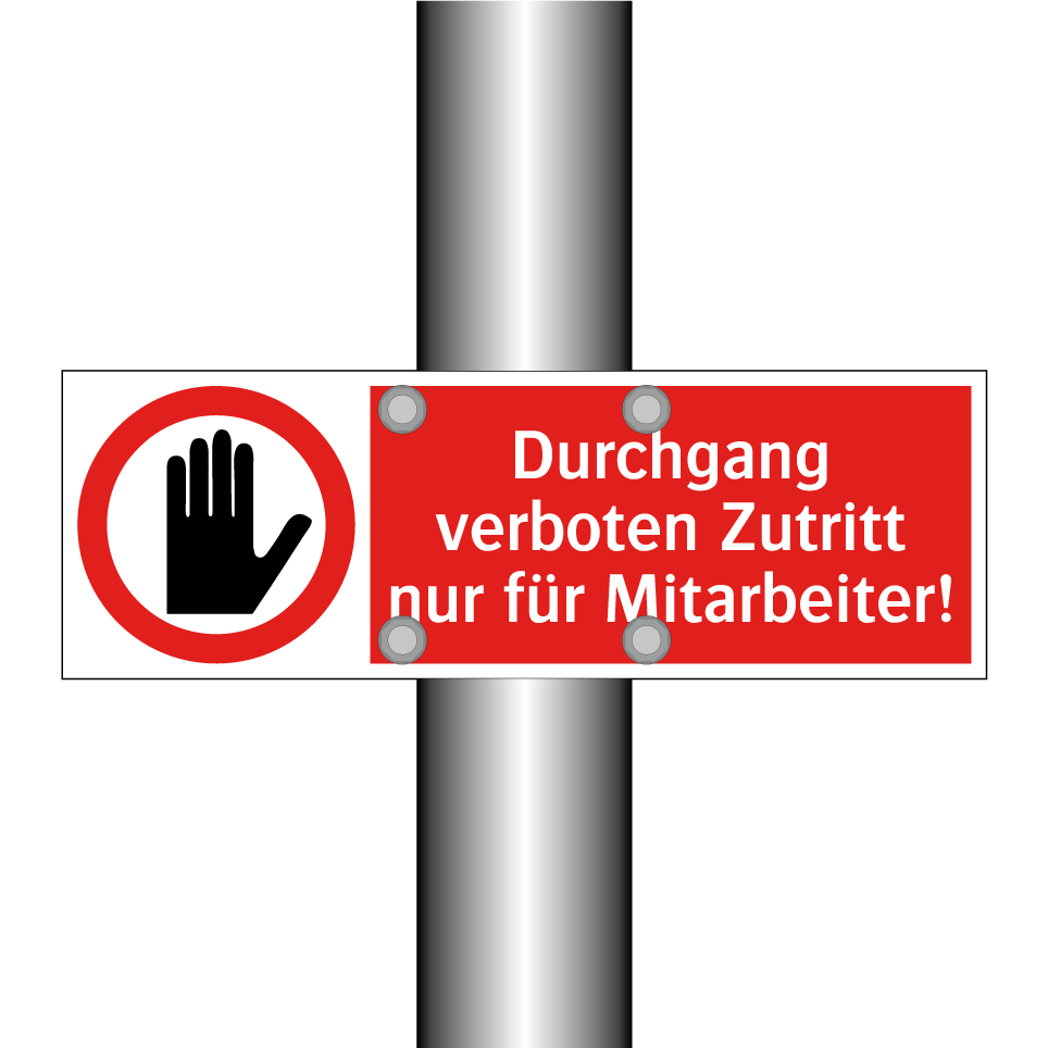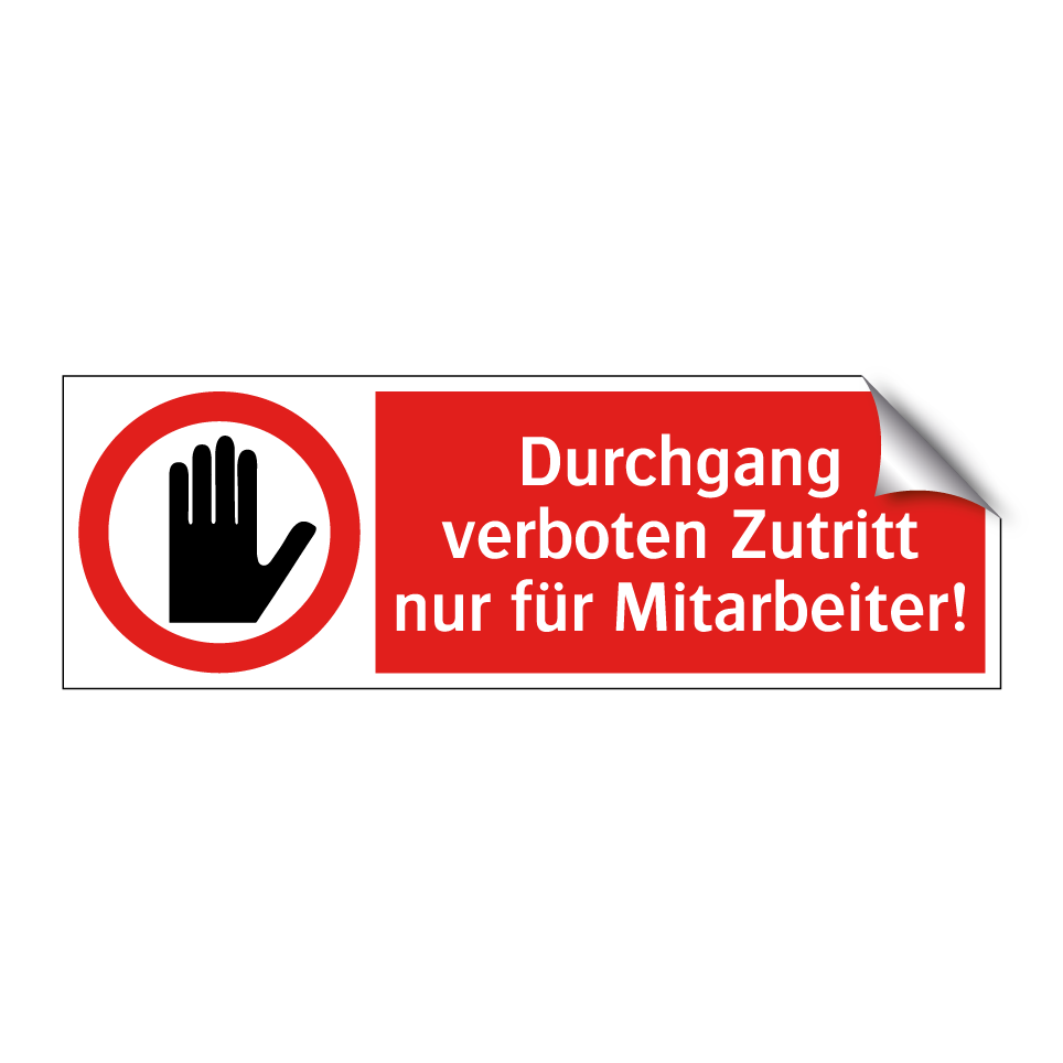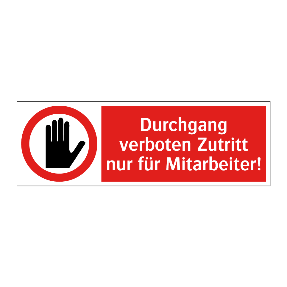 Verbotsschild mit dem Text Durchgang verboten Zutritt nur für Mitarbeiter!