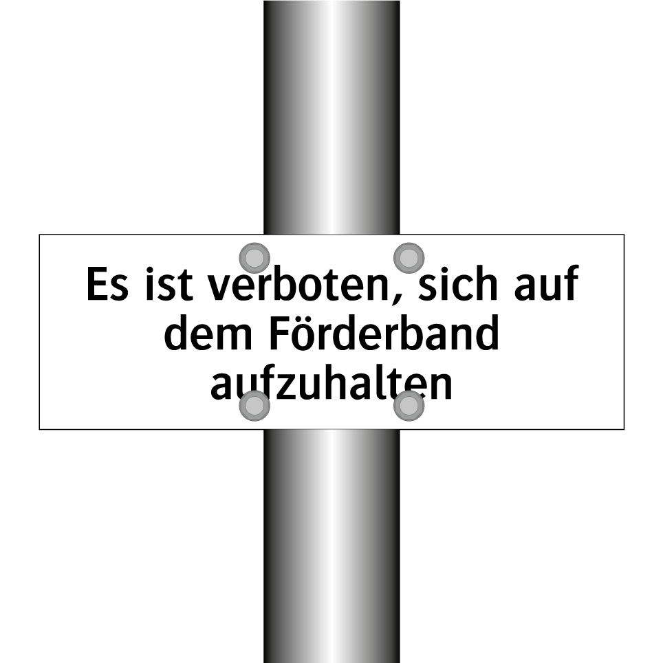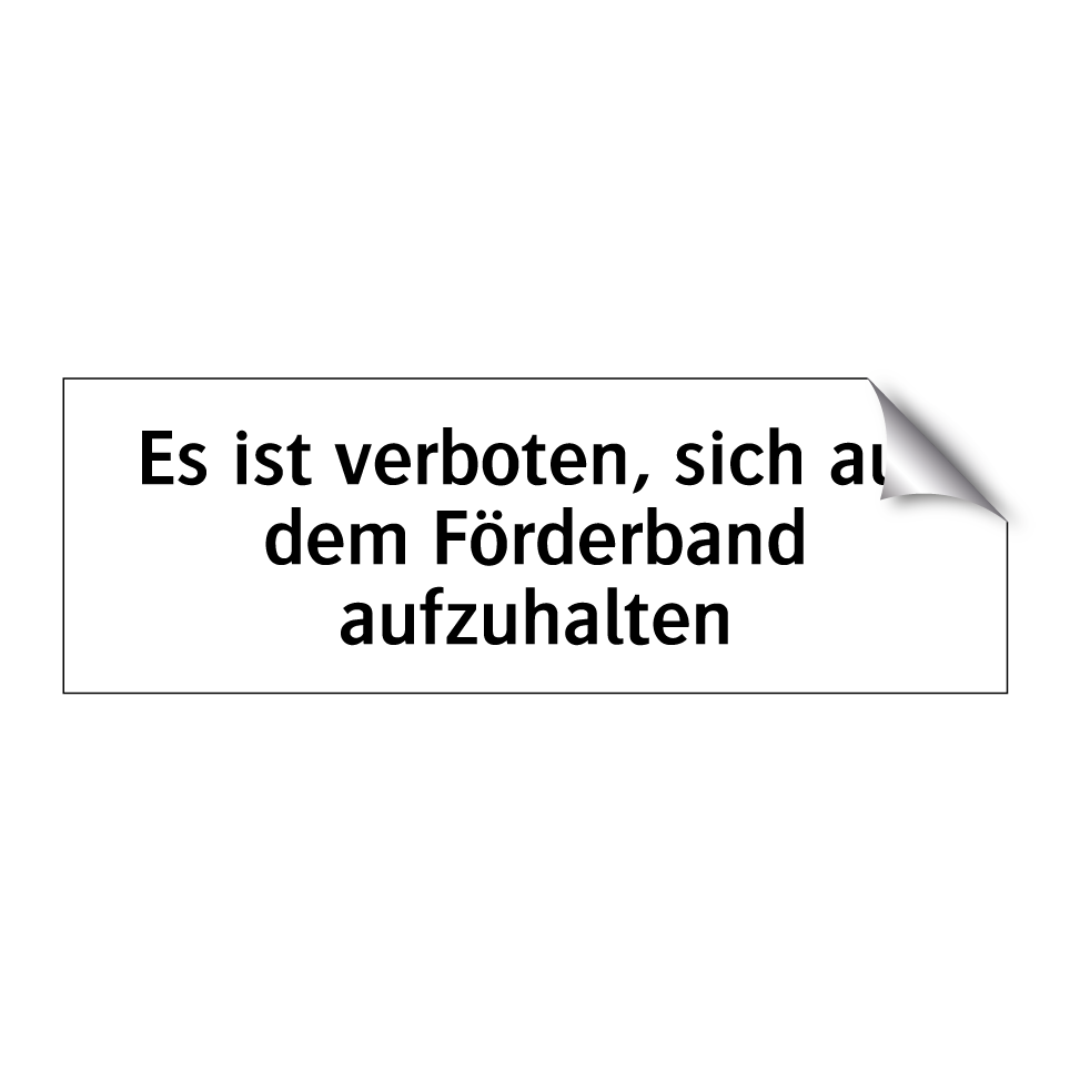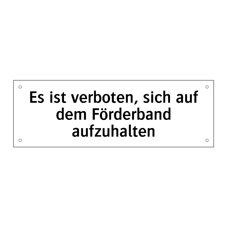 Verbotsschild mit dem Text Es ist verboten, sich auf dem Förderband aufzuhalten