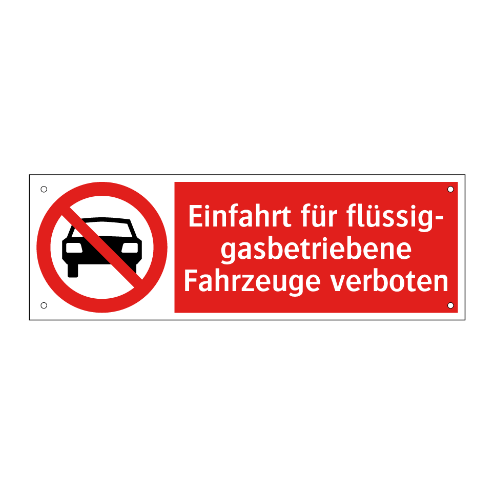 Verbotsschild mit dem Text Einfahrt für flüssig- gasbetriebene Fahrzeuge verboten
