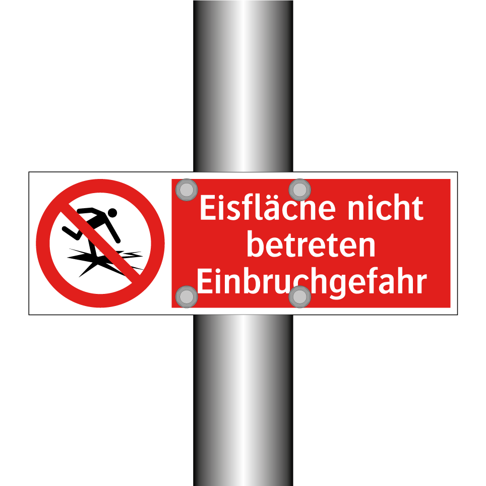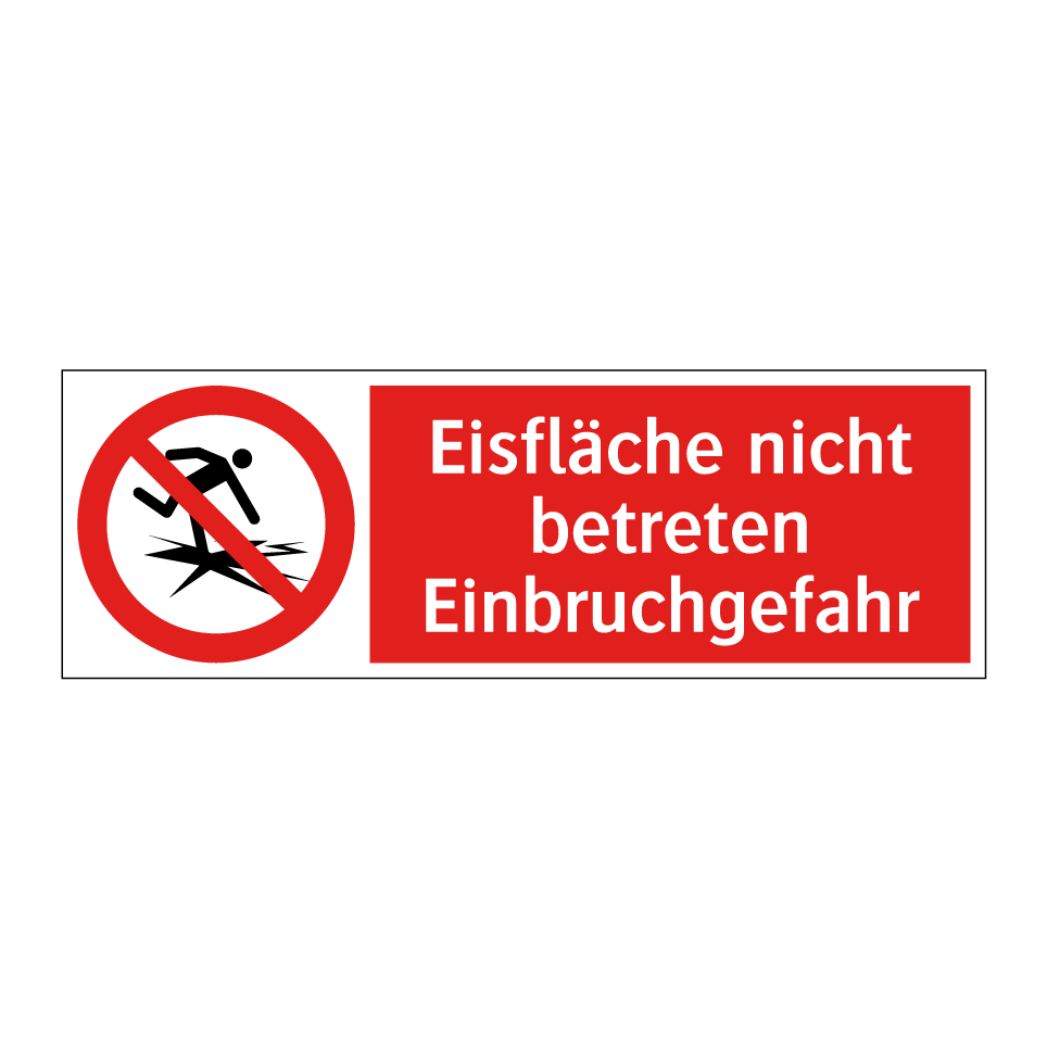 Verbotsschild mit dem Text Eisfläche nicht betreten Einbruchgefahr