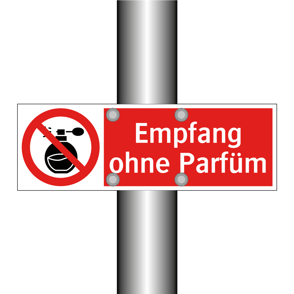 Verbotsschild mit dem Text Empfang ohne Parfüm