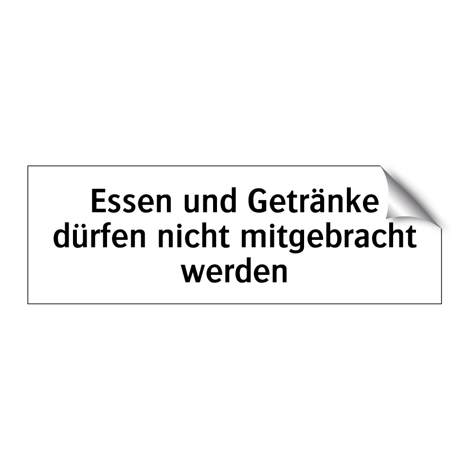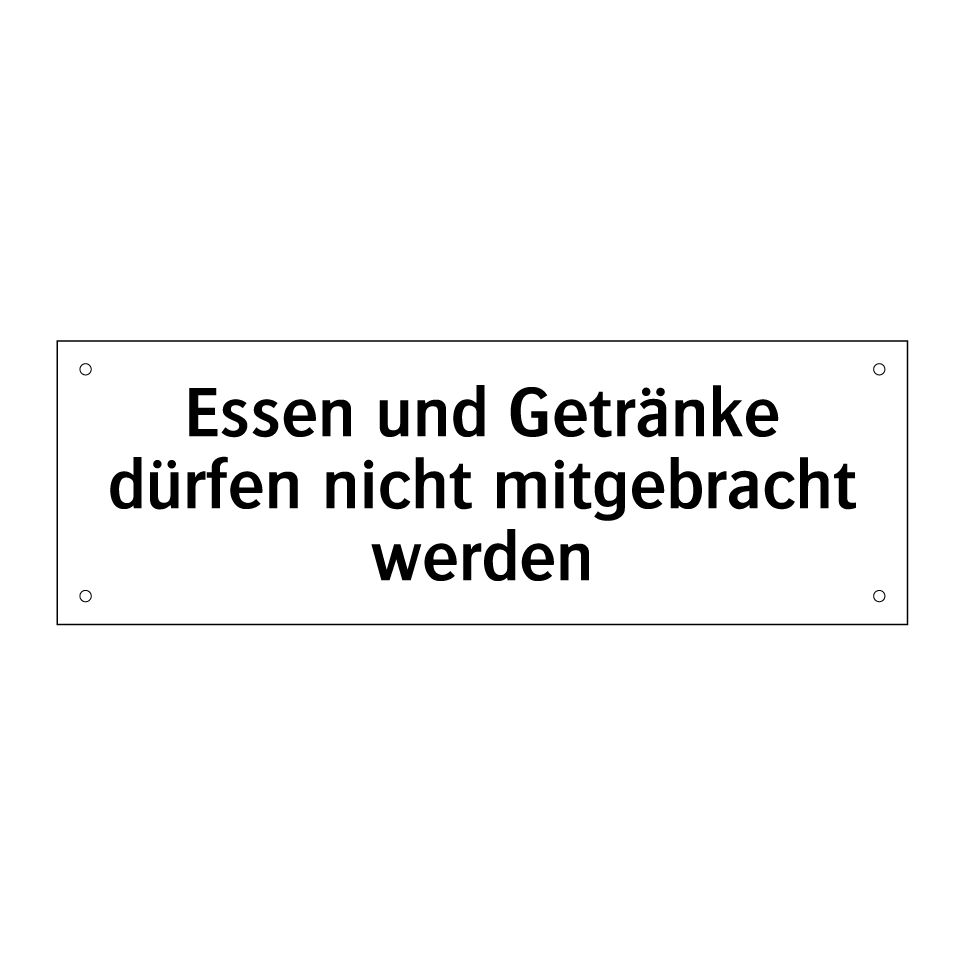 Verbotsschild mit dem Text Essen und Getränke dürfen nicht mitgebracht werden