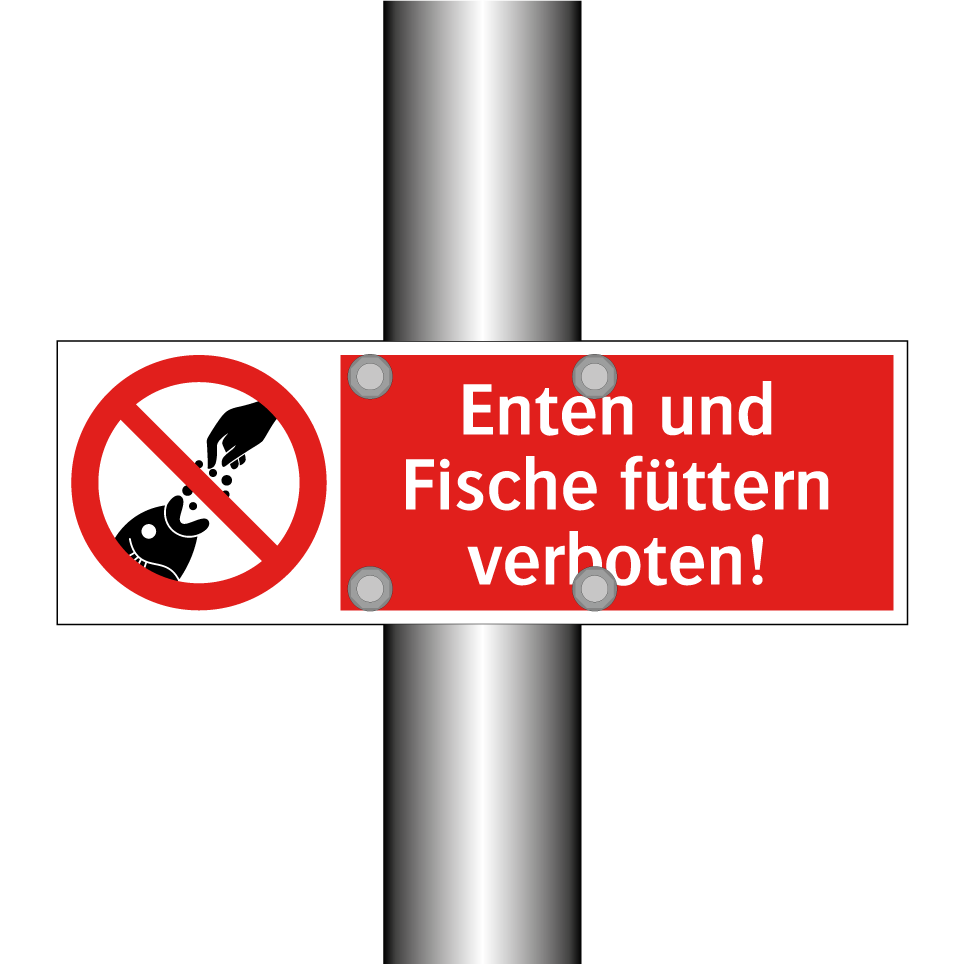 Verbotsschild mit dem Text Enten und Fische füttern verboten!