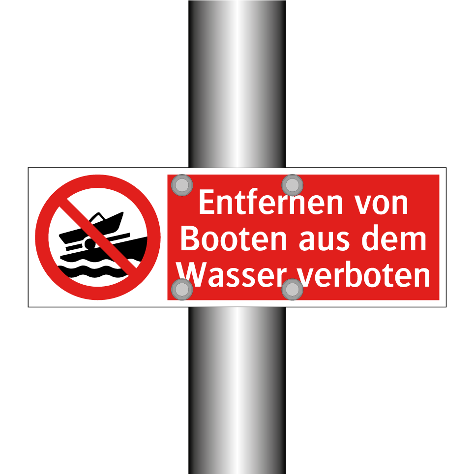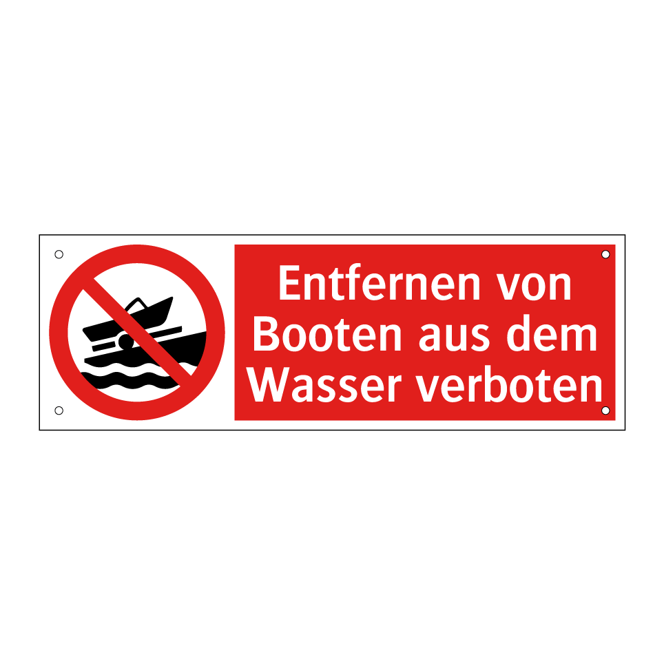 Verbotsschild mit dem Text Entfernen von Booten aus dem Wasser verboten