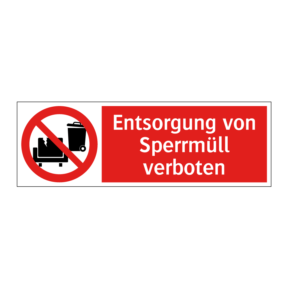 Verbotsschild mit dem Text Entsorgung von Sperrmüll verboten