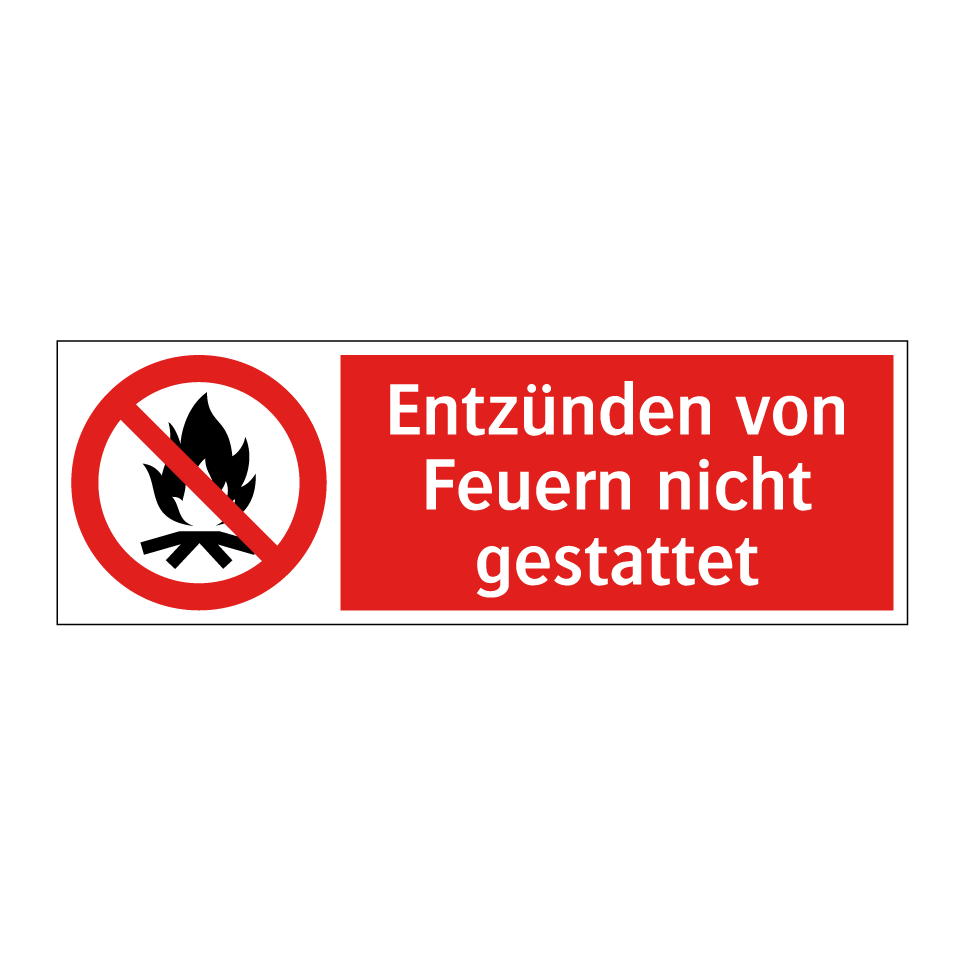 Verbotsschild mit dem Text Entzünden von Feuern nicht gestattet