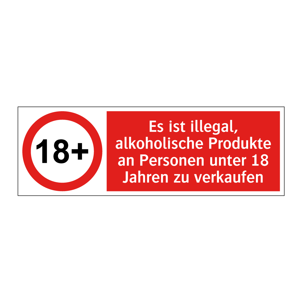 Diese auffällige Verbotsschild mit rotem Hintergrund und weißer Schrift ist ideal, um sicherzustellen, dass keine alkoholischen Produkte an Minderjährige verkauft werden. Sie eignet sich hervorragend für den Einsatz in Geschäften, Supermärkten, Bars und anderen Verkaufsstellen, wo Alkohol angeboten wird. Durch die klare Symbolik und die prägnante Botschaft wird das Bewusstsein für die gesetzlichen Bestimmungen geschärft. Platzieren Sie diese Verbotsschilder an gut sichtbaren Stellen, um sicherzustellen, dass alle Kunden und Mitarbeiter die Regeln einhalten. Diese Schilder sind ein unverzichtbares Element, um die Einhaltung der Altersbeschränkungen zu gewährleisten und rechtliche Konsequenzen zu vermeiden.
