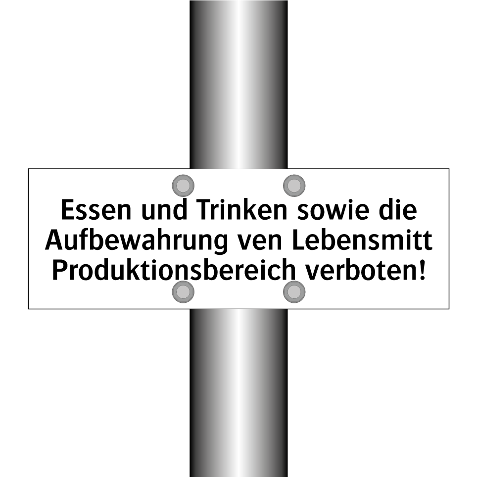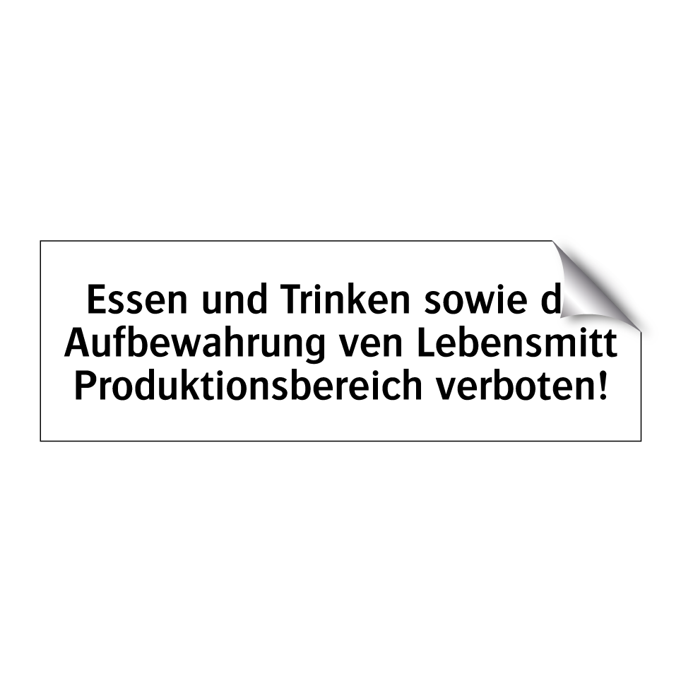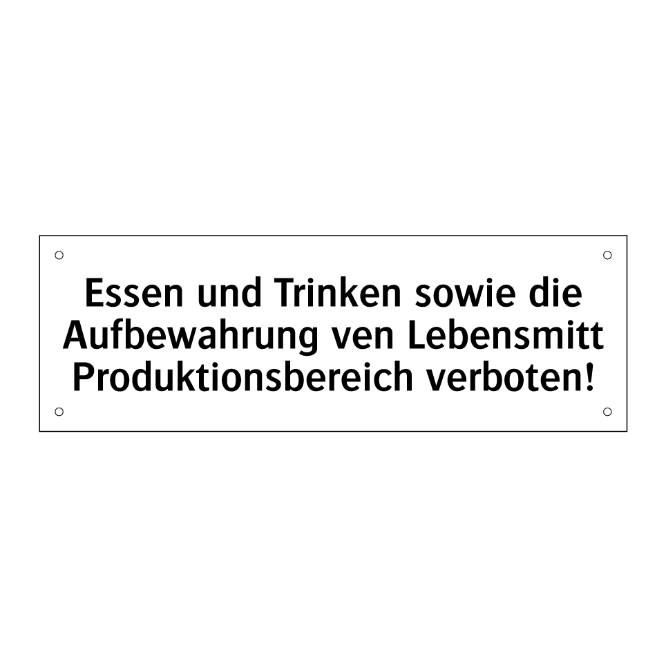 Verbotsschild mit dem Text Essen und Trinken sowie die Aufbewahrung ven Lebensmitt Produktionsbereich verboten!
