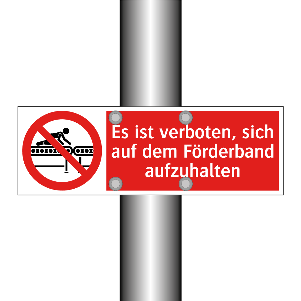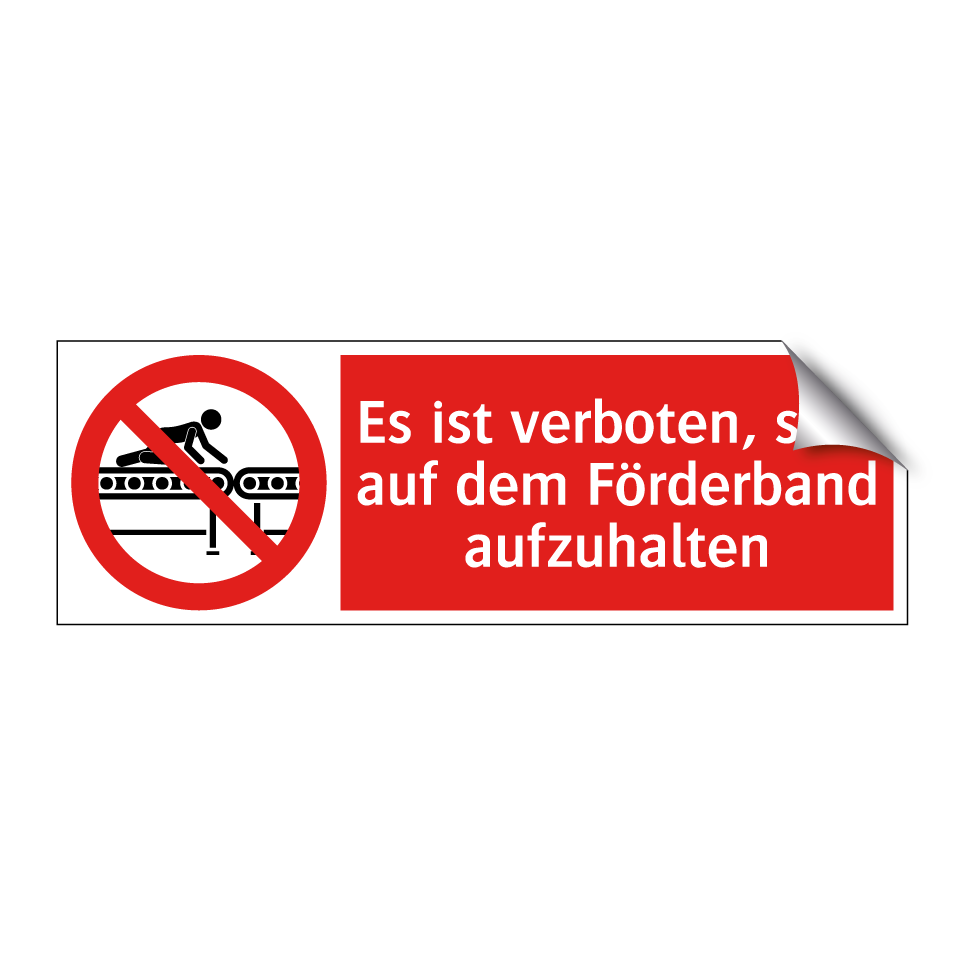 Verbotsschild mit dem Text Es ist verboten, sich auf dem Förderband aufzuhalten