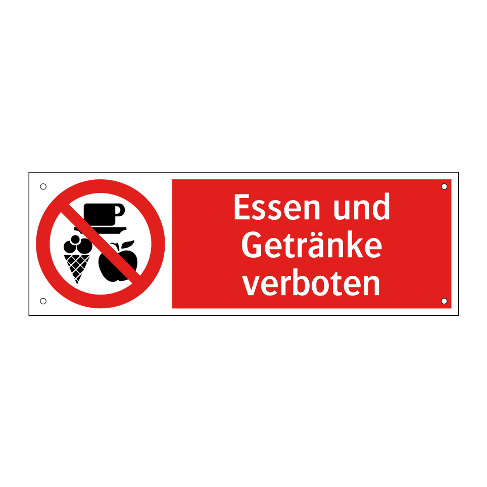 Verbotsschild mit dem Text Essen und Getränke verboten
