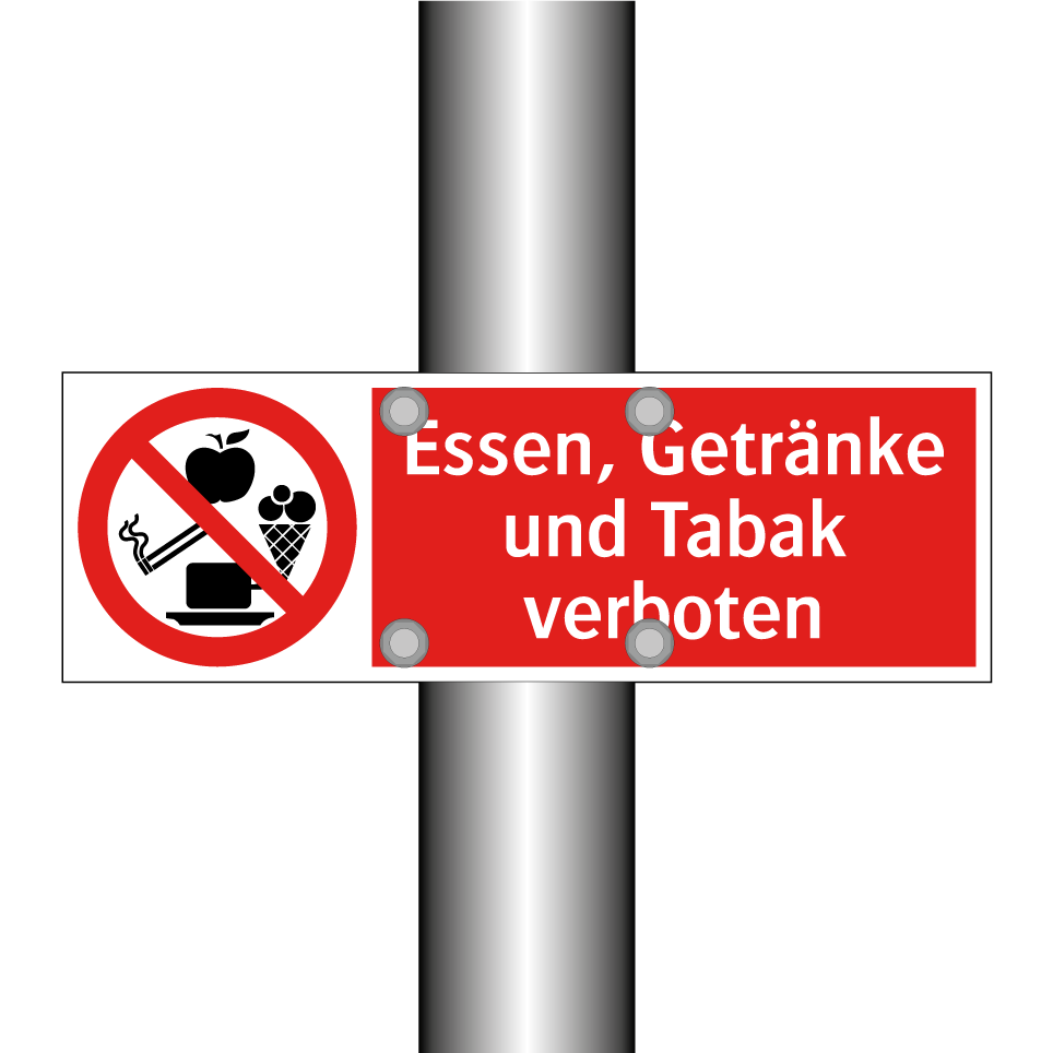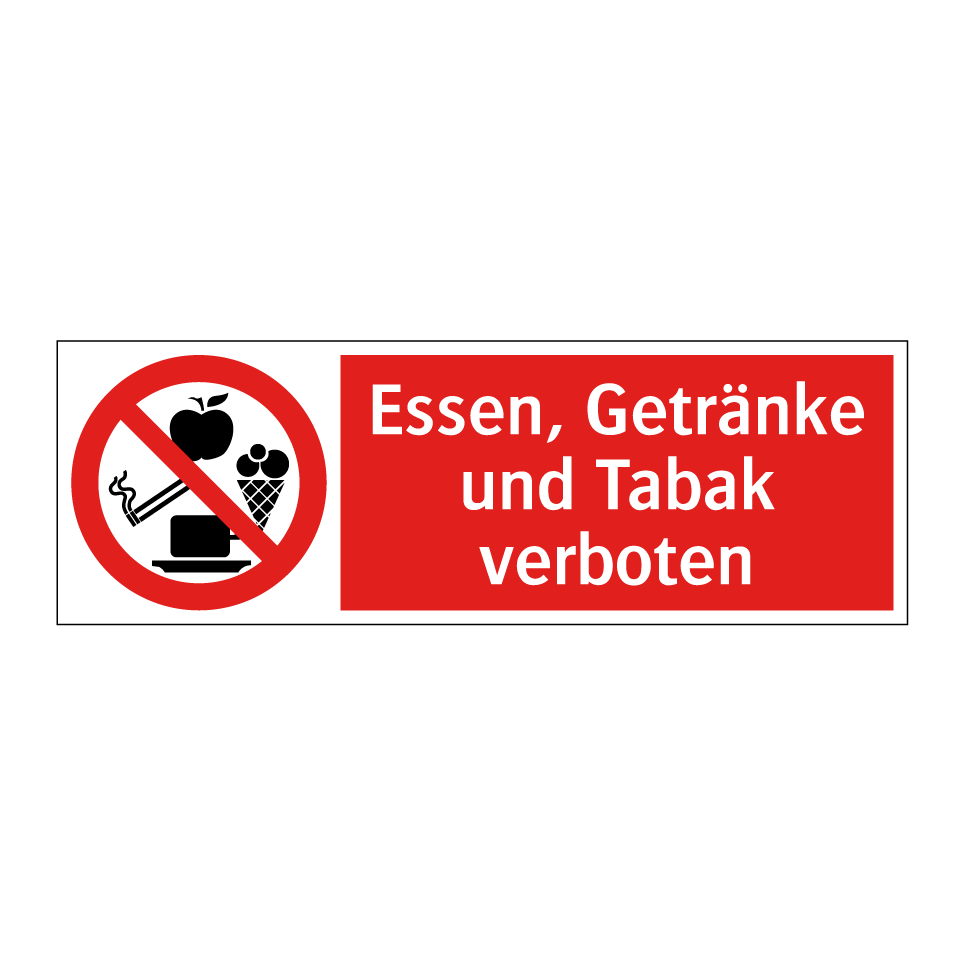 Verbotsschild mit dem Text Essen, Getränke und Tabak verboten