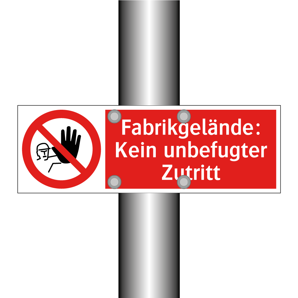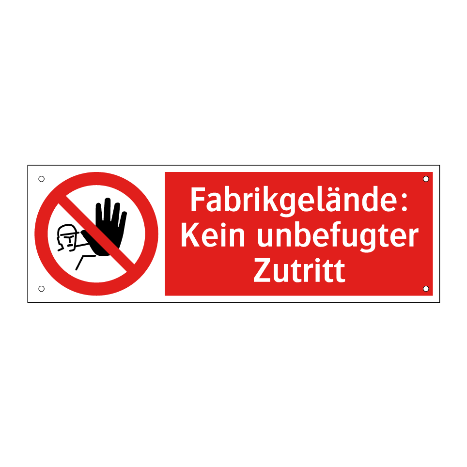 Verbotsschild mit dem Text Fabrikgelände: Kein unbefugter Zutritt