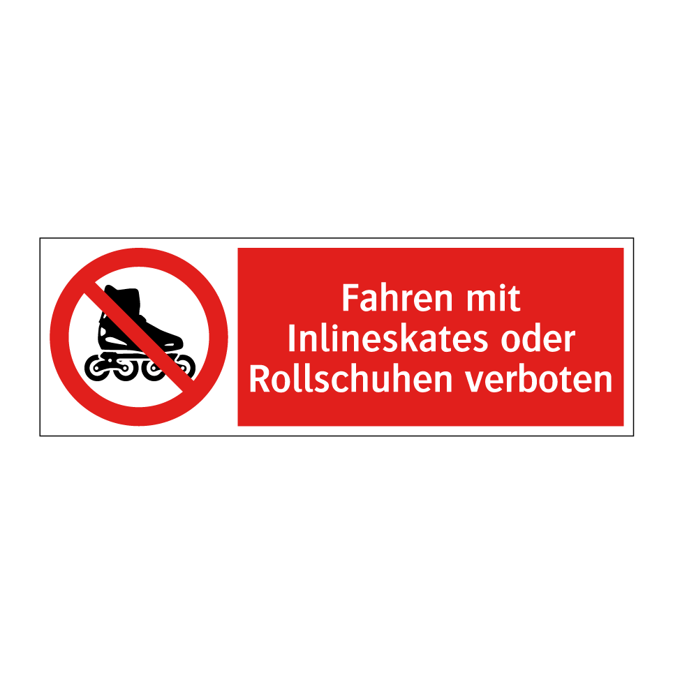 Verbotsschild mit dem Text Fahren mit Inlineskates oder Rollschuhen verboten