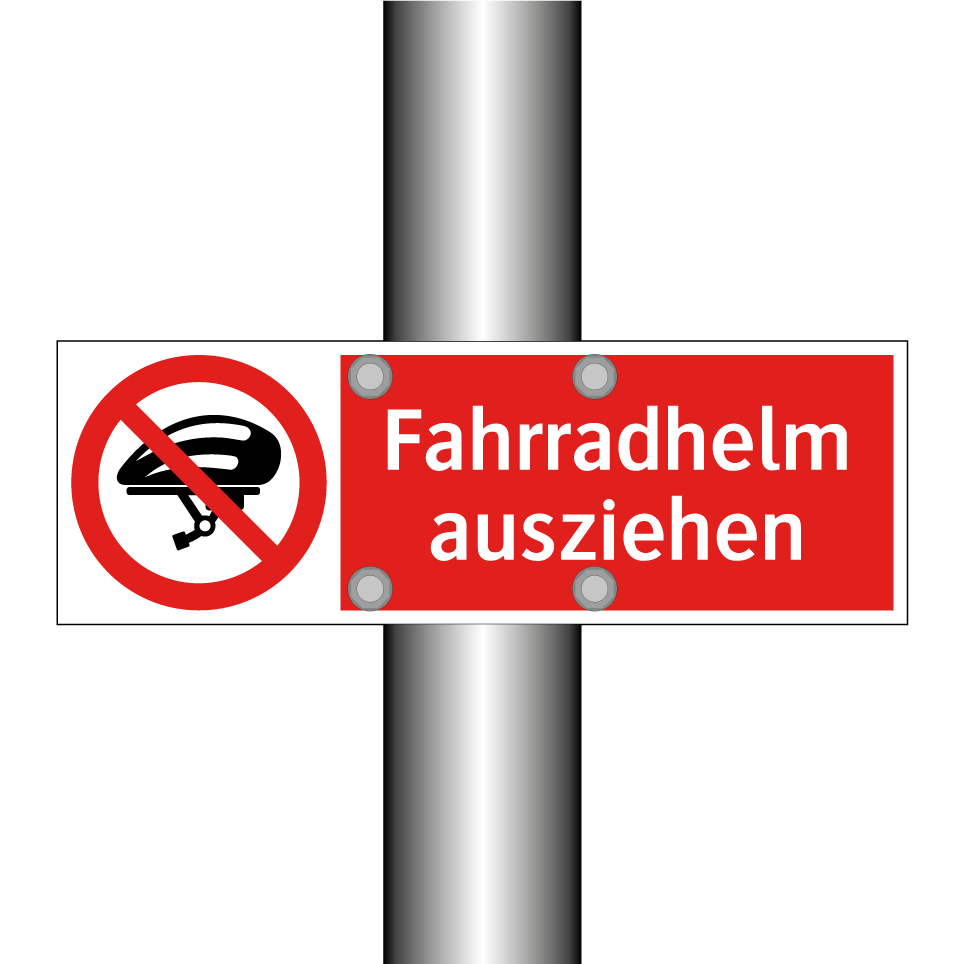 Verbotsschild mit dem Text Fahrradhelm ausziehen
