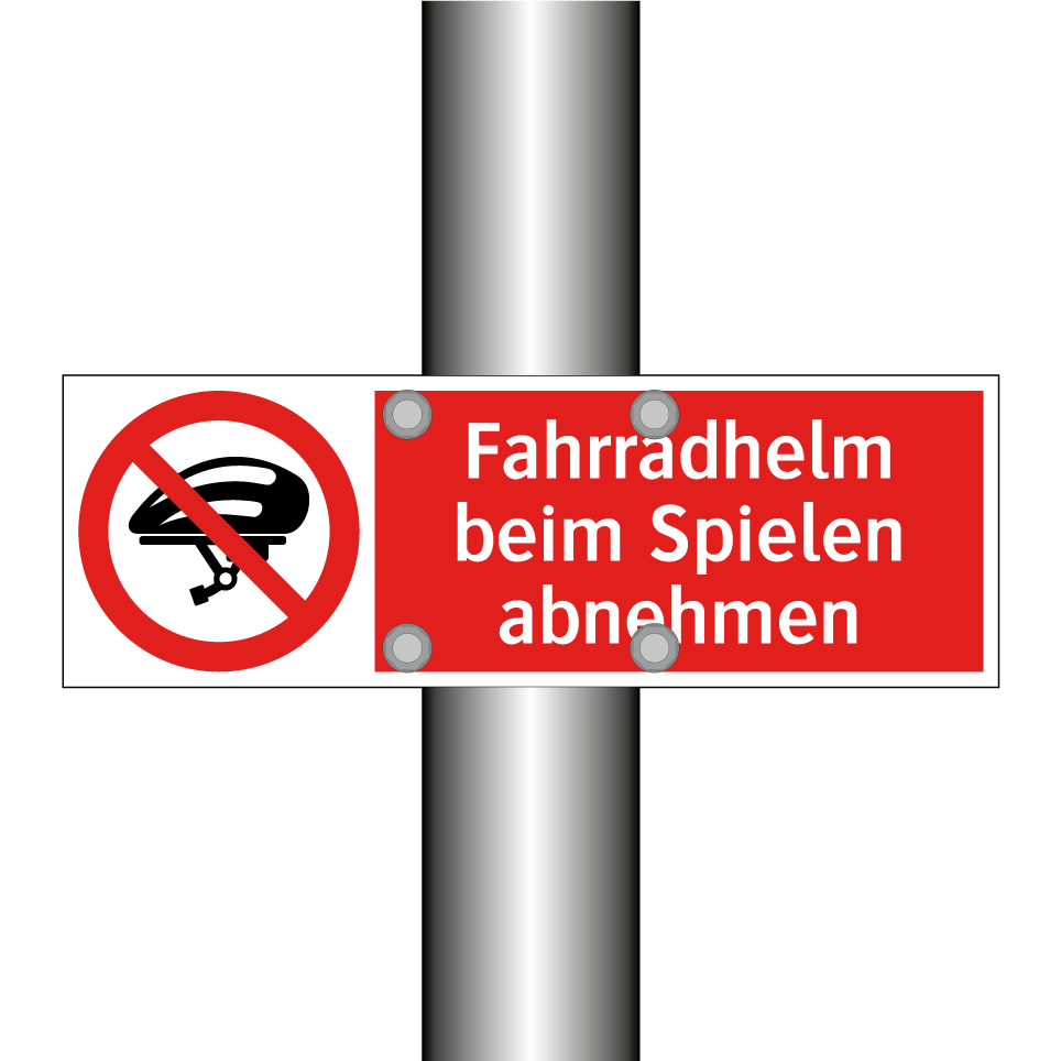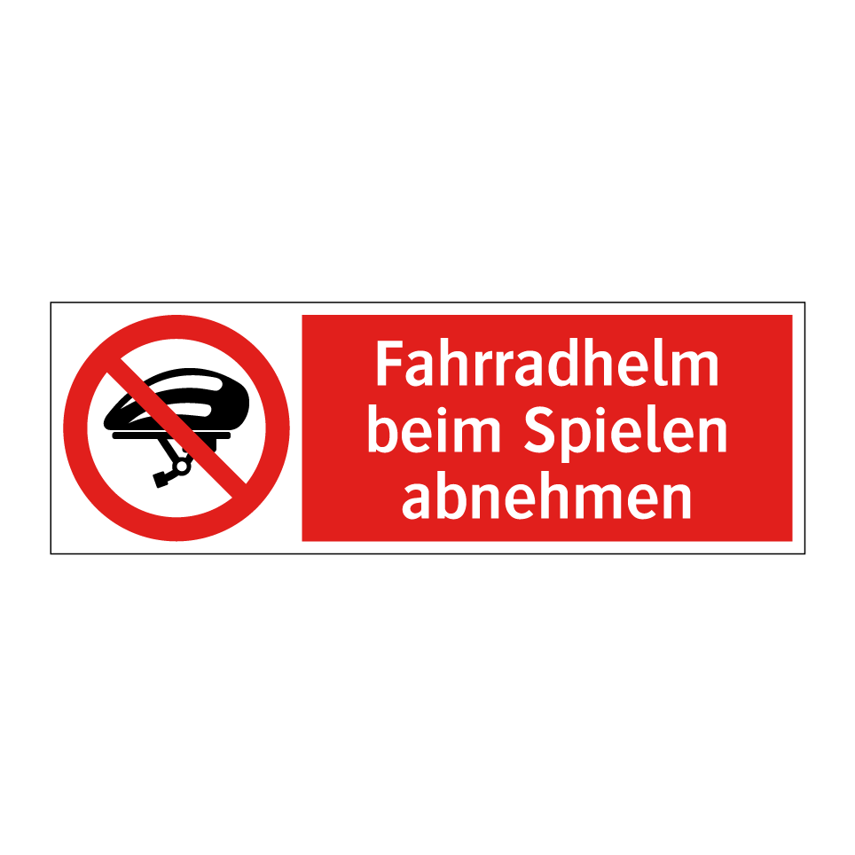 Verbotsschild mit dem Text Fahrradhelm beim Spielen abnehmen
