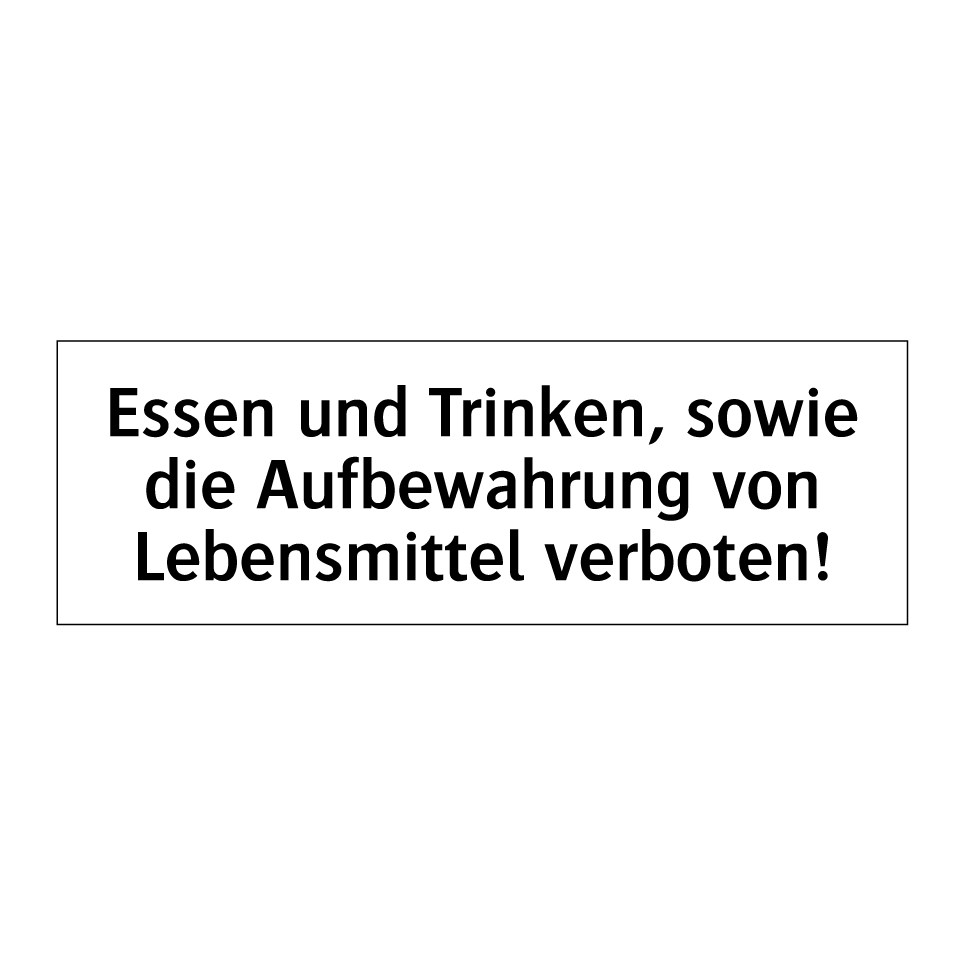 Verbotsschild mit dem Text Essen und Trinken, sowie die Aufbewahrung von Lebensmittel verboten!