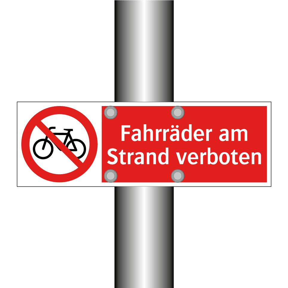 Verbotsschild mit dem Text Fahrräder am Strand verboten
