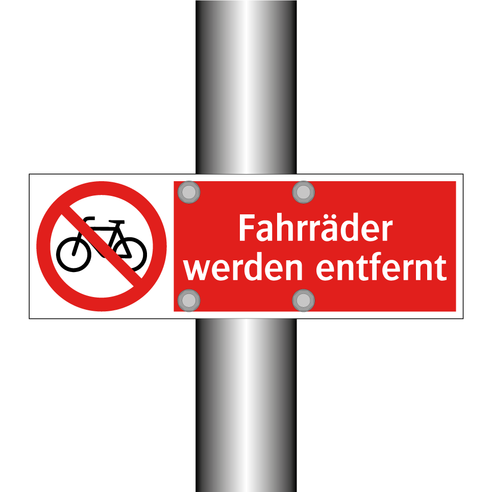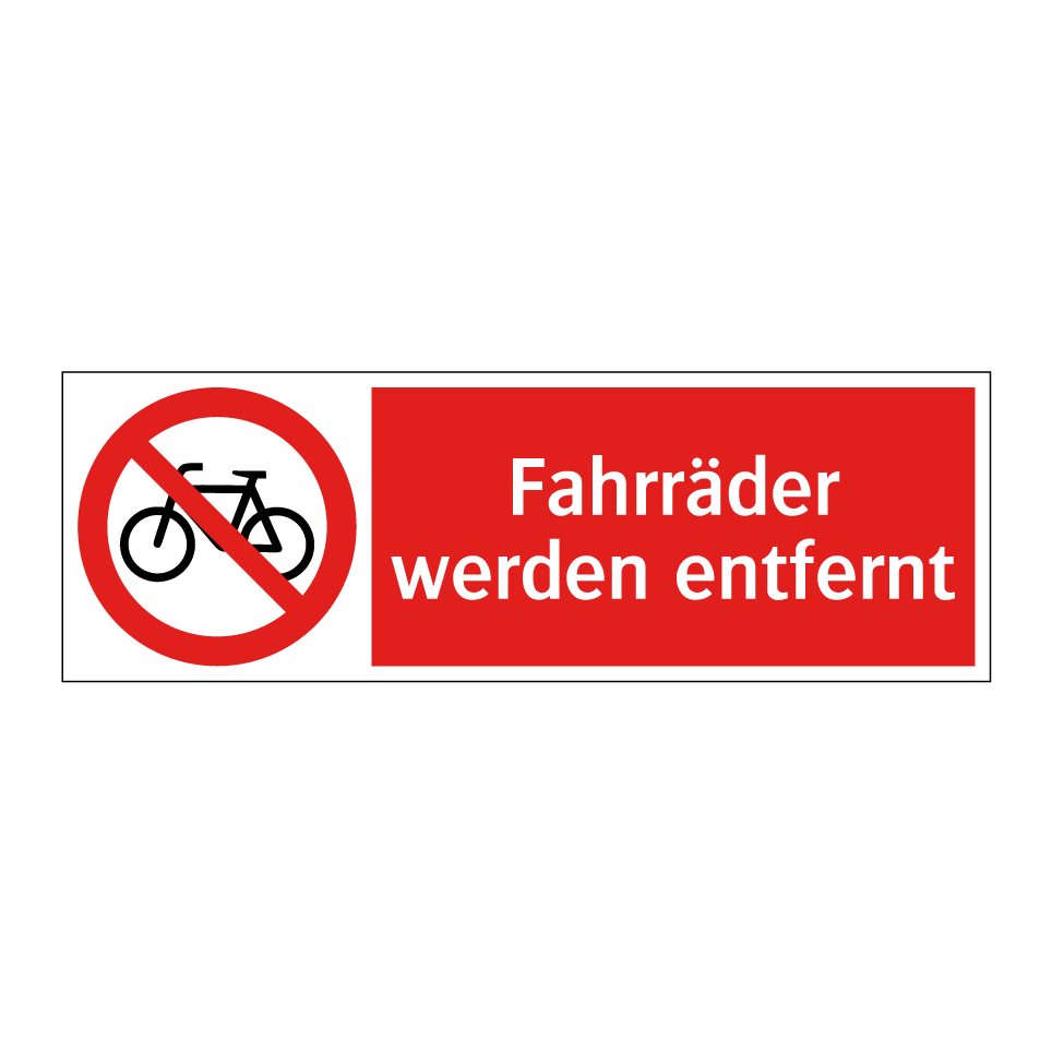 Verbotsschild mit dem Text Fahrräder werden entfernt