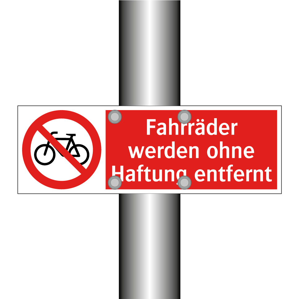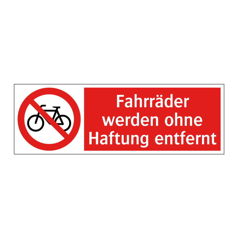Verbotsschild mit dem Text Fahrräder werden ohne Haftung entfernt