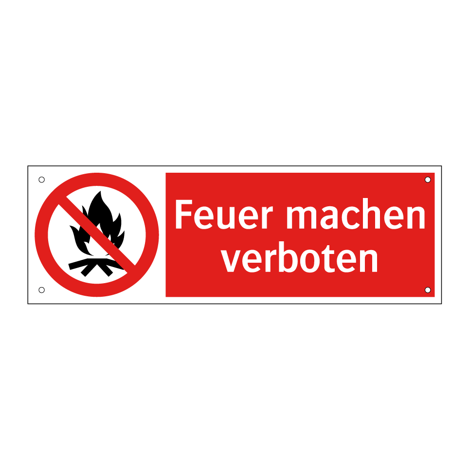 Verbotsschild mit dem Text Feuer machen verboten