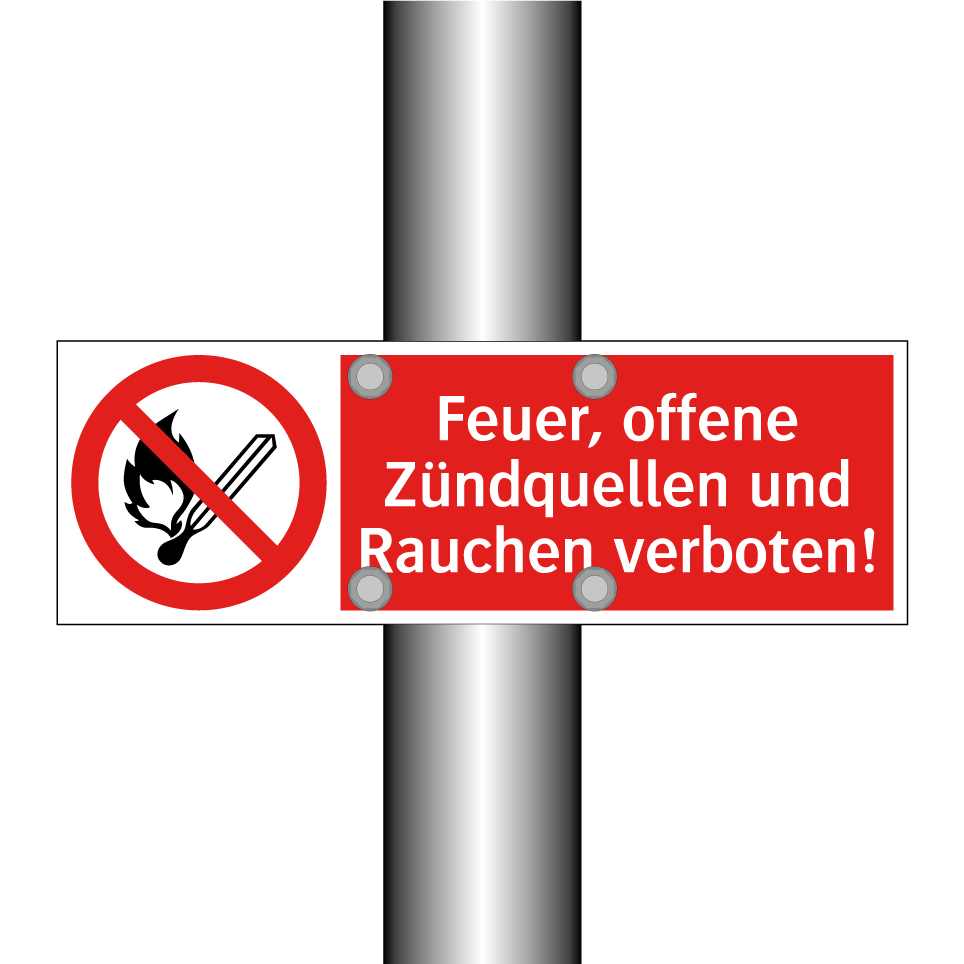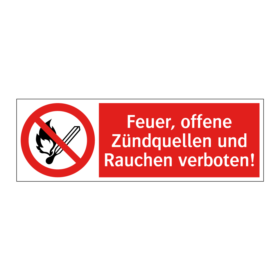 Verbotsschild mit dem Text Feuer, offene Zündquellen und Rauchen verboten!