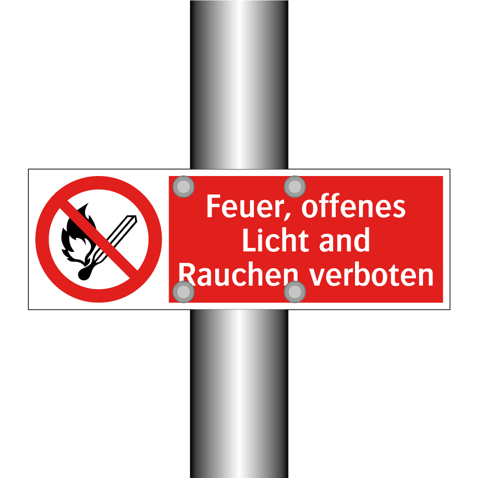 Verbotsschild mit dem Text Feuer, offenes Licht and Rauchen verboten