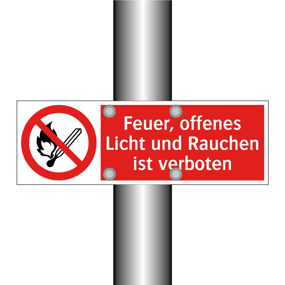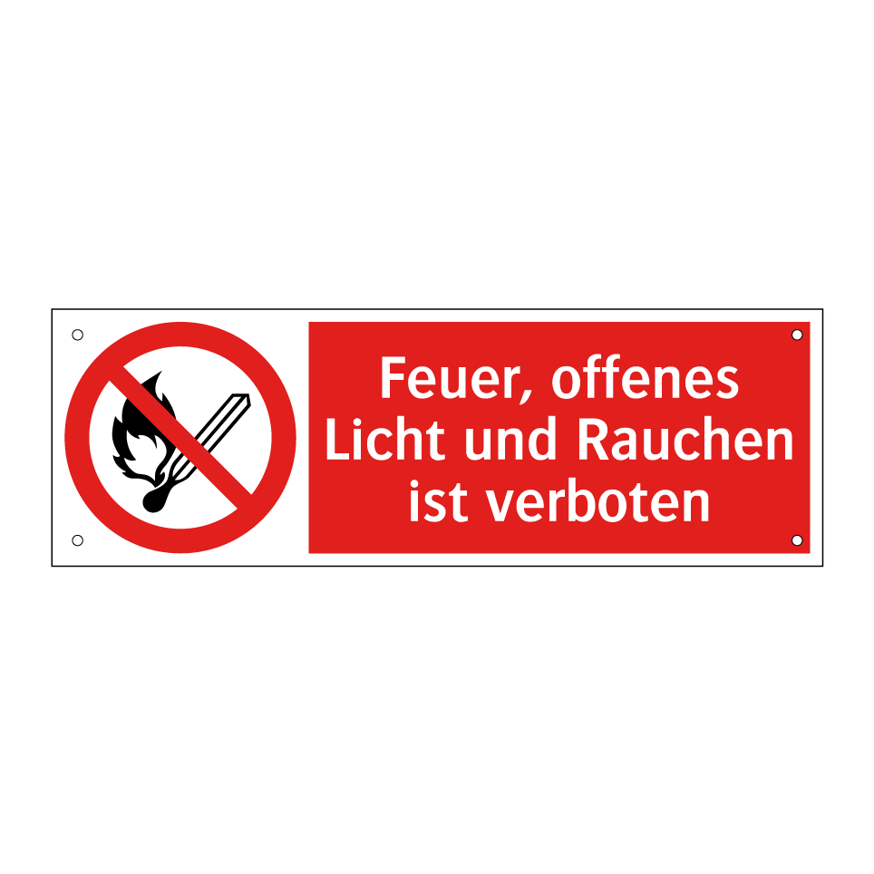 Verbotsschild mit dem Text Feuer, offenes Licht und Rauchen ist verboten