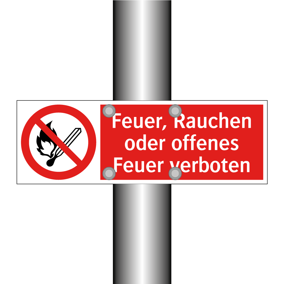 Verbotsschild mit dem Text Feuer, Rauchen oder offenes Feuer verboten