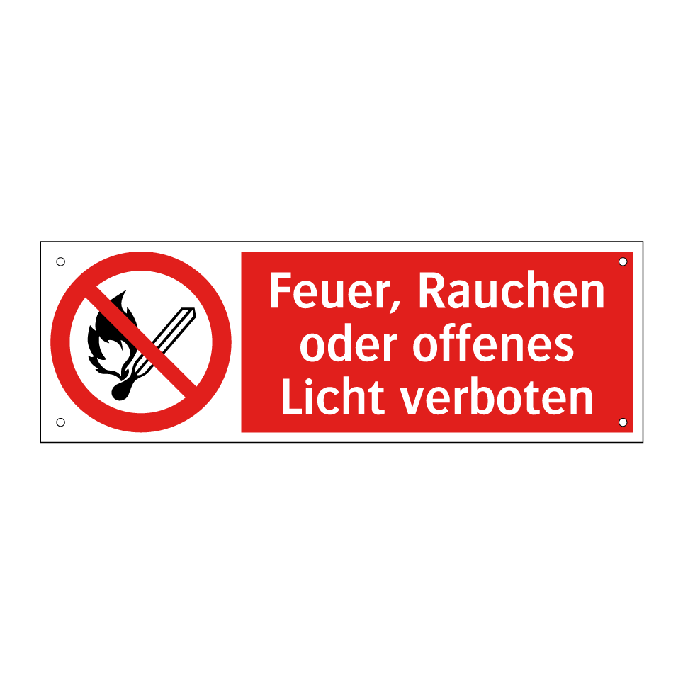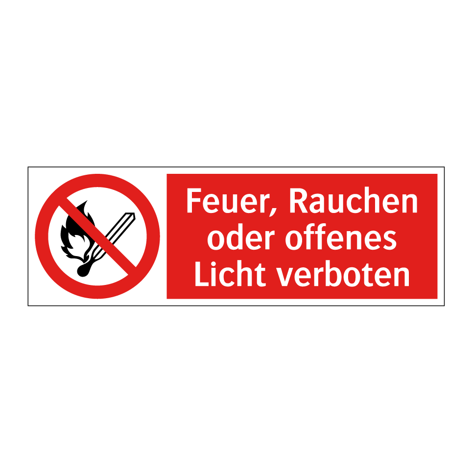 Verbotsschild mit dem Text Feuer, Rauchen oder offenes Licht verboten