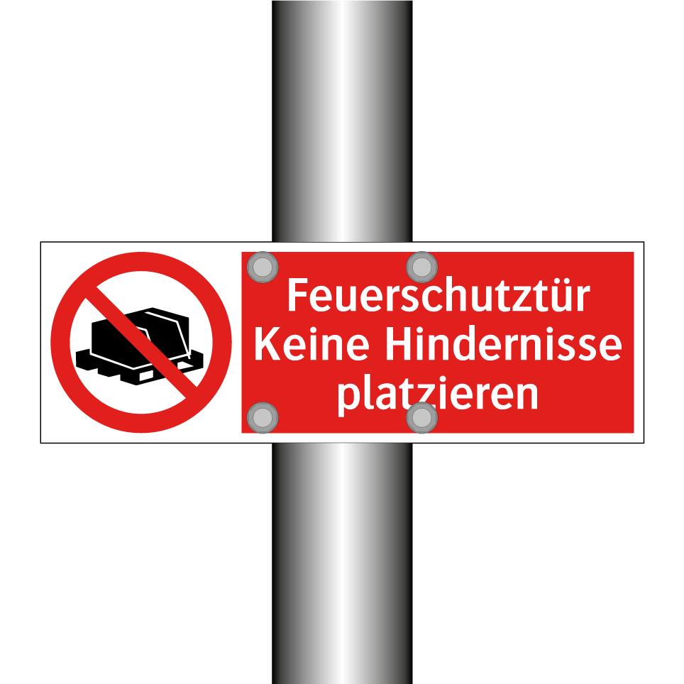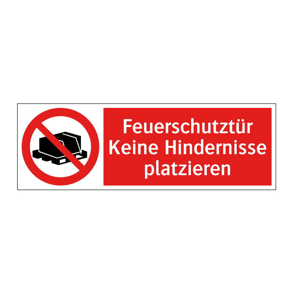 Verbotsschild mit dem Text Feuerschutztür Keine Hindernisse platzieren