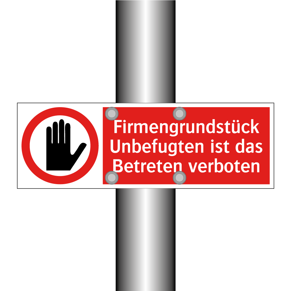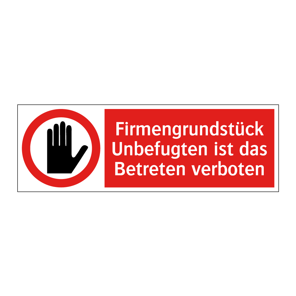 Verbotsschild mit dem Text Firmengrundstück Unbefugten ist das Betreten verboten