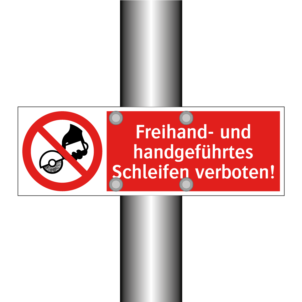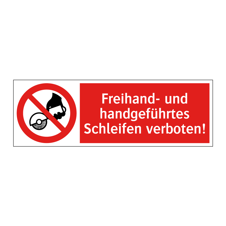 Verbotsschild mit dem Text Freihand- und handgeführtes Schleifen verboten!