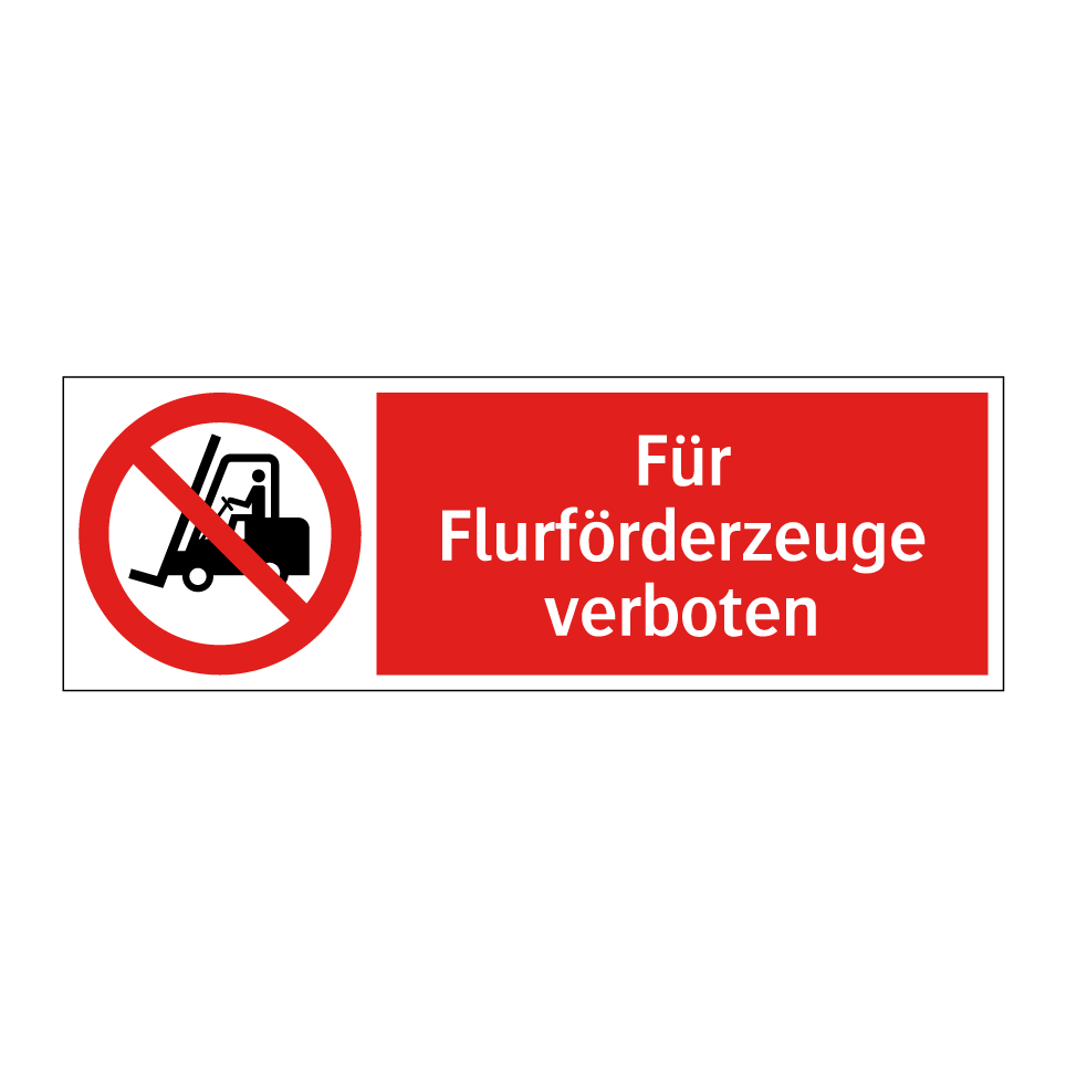 Verbotsschild mit dem Text Für Flurförderzeuge verboten